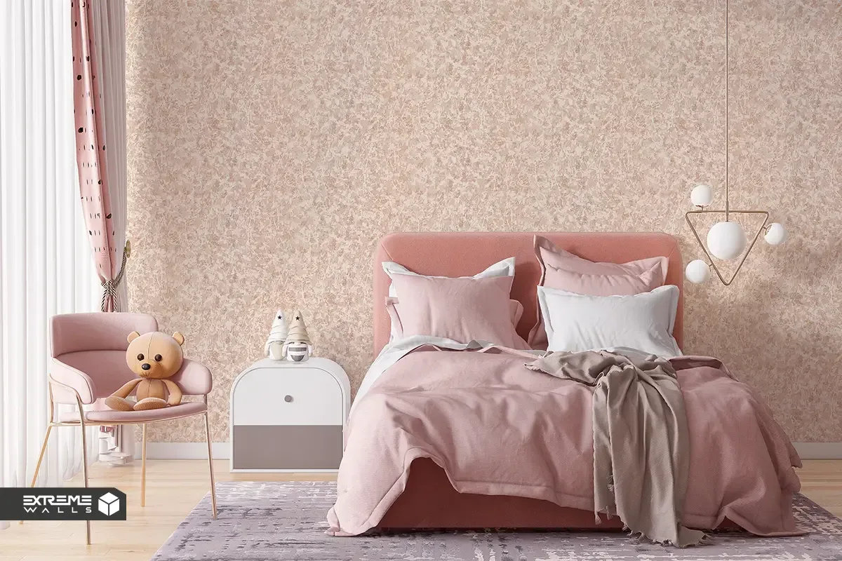 در دکوراسیون اتاق خواب دخترانه، کاغذ دیواری پتینه صورتی فضایی رمانتیک، لطیف و در عین حال بسیار جذاب و مدرن را ایجاد میکند.