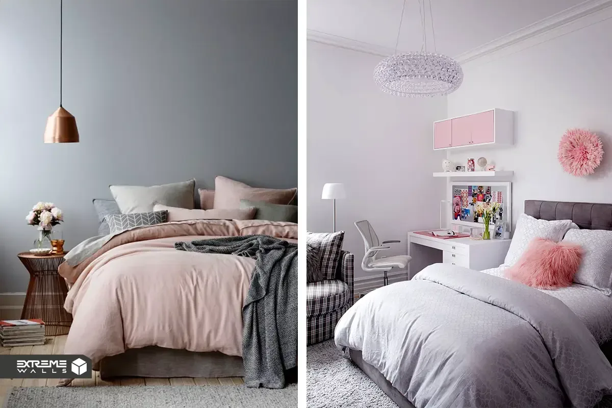 - ترکیب دو رنگ صورتی و طوسی در دکوراسیون اتاق خواب دخترانه: