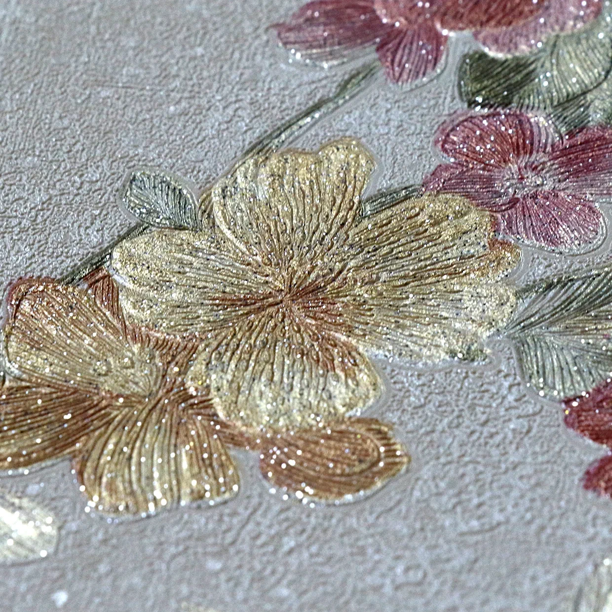 طراحی این کاغذ دیواری تلفیقی از رنگ کرم صورتی و آجری و به صورت برجسته میباشد که باعث زیباتر شدن این طرح شده است. ترکیب رنگها و طرحها در این کاغذ دیواری بر زیباسازی و بهتر جلوه دادن نقشهای بکار رفته بر روی کاغذ تاثیر بسزایی داشته است.