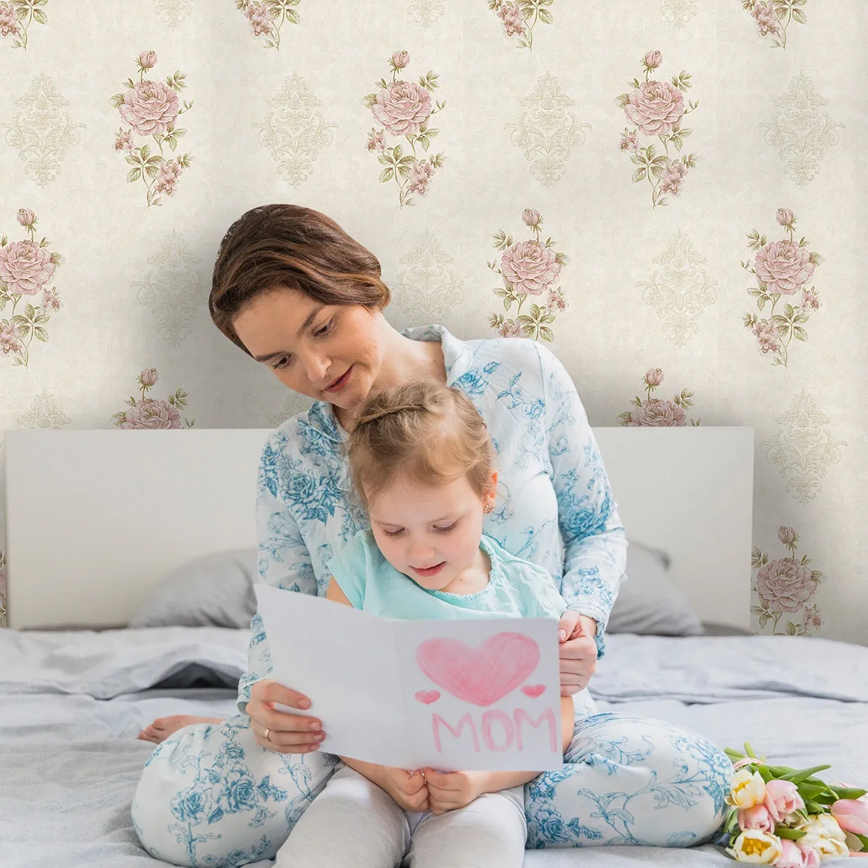 کاغذ دیواری گلدار طرح ترکیبی