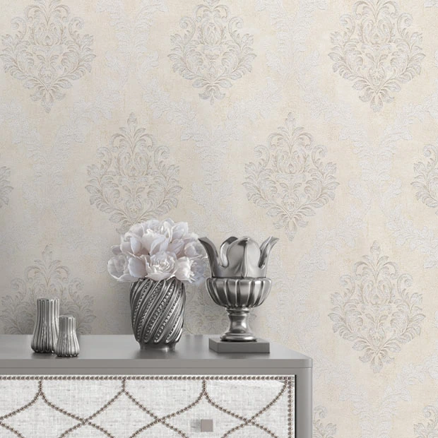 طرحی که در این کاغذ دیواری به کار رفته است داماسکهای برجسته کرمرنگ به همراه پسزمینه سفیدرنگ می باشد. ترکیب دو طرح در پسزمینهای روشن باعث ایجاد فضای دلنشین و شیک برای دیوارهایی میشود که این کاغذ دیواری در آن به کار گرفته میشود.