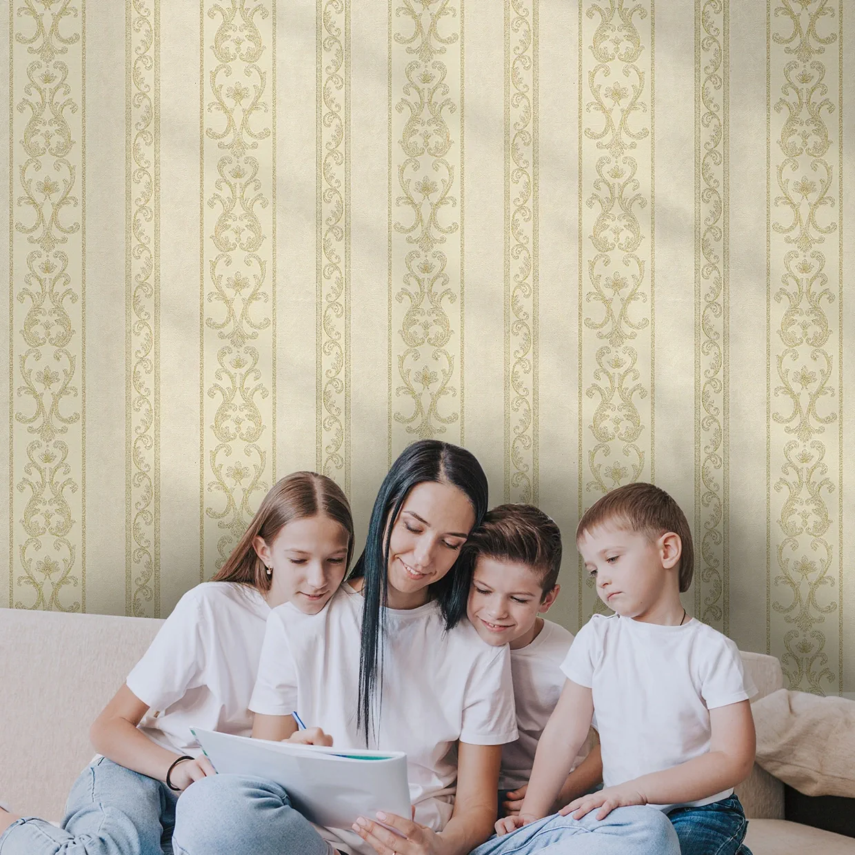 پیشنهاد میشود که از این طرح کاغذ دیواری به تنهایی استفاده نکنید و آن را به صورت تلفیقی با مکملهای پوششی آن مورد استفاده قرار دهید.