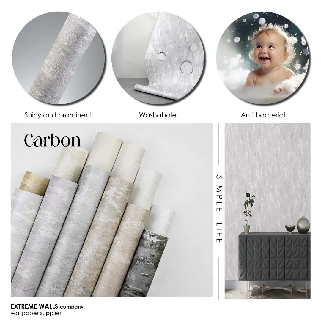 کاغذ دیواری طرح پتینه خاکستری کد ۱۰۰۸۲ از آلبوم کربن، محصولی انحصاری دیگر از شرکت اکستریم والز است که با بالاترین کیفیت تولید و به بازار عرضه شده است. تمامی کدهای این آلبوم، دارای بافت و طرح برجسته و قابل شستشو هستند.