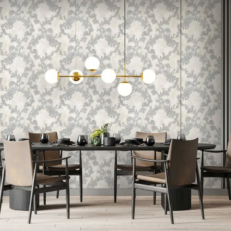 طراحی کاغذ دیواری طرح نقش و نگار کد ۶۱۳۰ به سبک پست مدرن و طرح آن به صورت نقش و نگار است. این مدل کاغذ دیواری را بهتر است بر روی دیوارهای شاخص نصب کنید. چنانچه خواستید تمامی دیوارهای فضای خود را کاغذ دیواری کنید، میتوانید از طرحهای مکمل این کاغذ دیواری بر روی دیوارهای مقابل یا شاخص آن استفاده کنید.