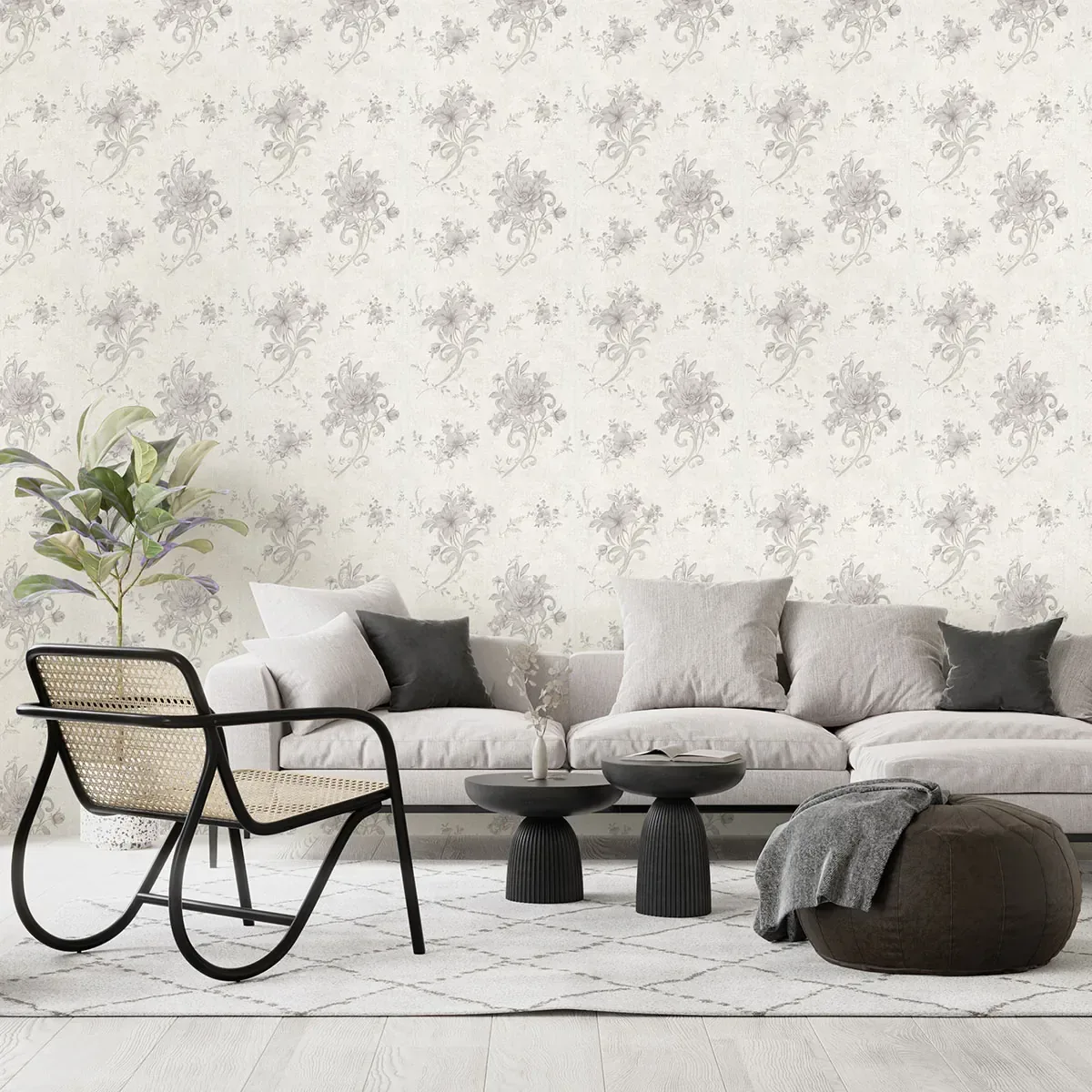 در طراحی این کاغذ دیواری از آلبوم هیدروژن رنگهای کرم، خاکستری و بنفش به کار رفته است که میتواند جلوهای خاص به فضاهایی بدهد که از این کاغذ دیواری در طراحی آن استفاده میشود.