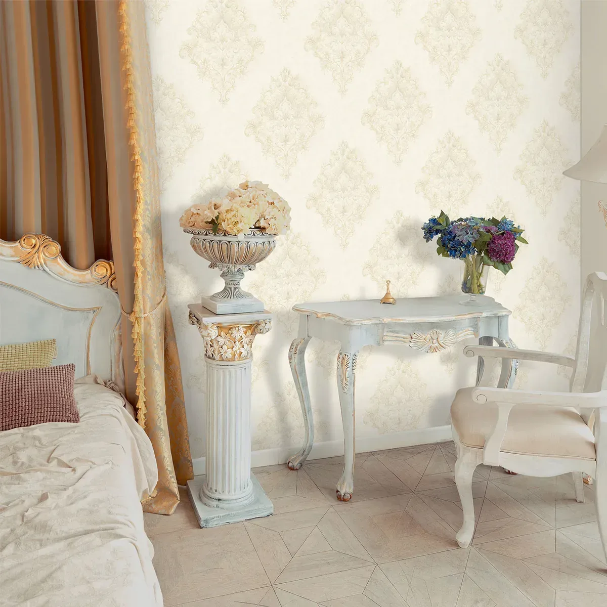 کاغذ دیواری طرح داماسک الون کد ۵۰۹۵ برای دکوراسیون‌هایی طراحی شده که به سبک کلاسیک چیدمان آن انجام شده است. تناسب رنگی و سبکی با اکسسوری و استفاده کدهای مکمل پوششی غیرشاخص باعث می‌شود که دکوراسیونی بدون نقص و کامل را داشته باشید.