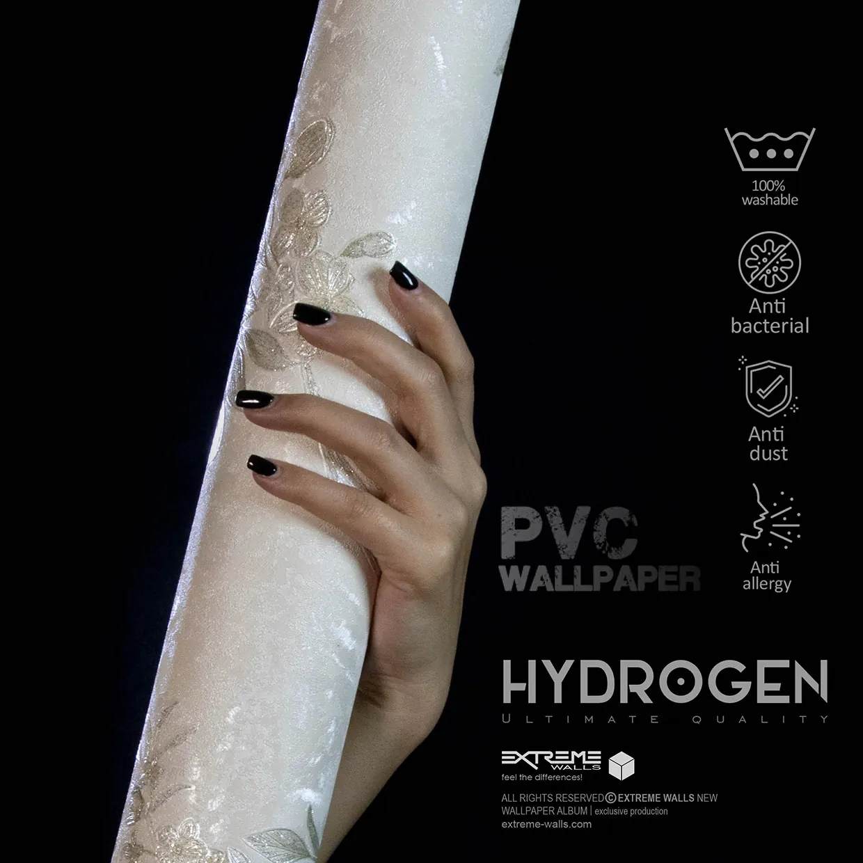 در طراحی این کاغذ دیواری از آلبوم هیدروژن رنگهای سبز کله غازی و رگههایی از رنگ مشکی به کار رفته است که میتواند جلوهای خاص به فضاهایی بدهد که از این کاغذ دیواری در طراحی آن استفاده میشود.