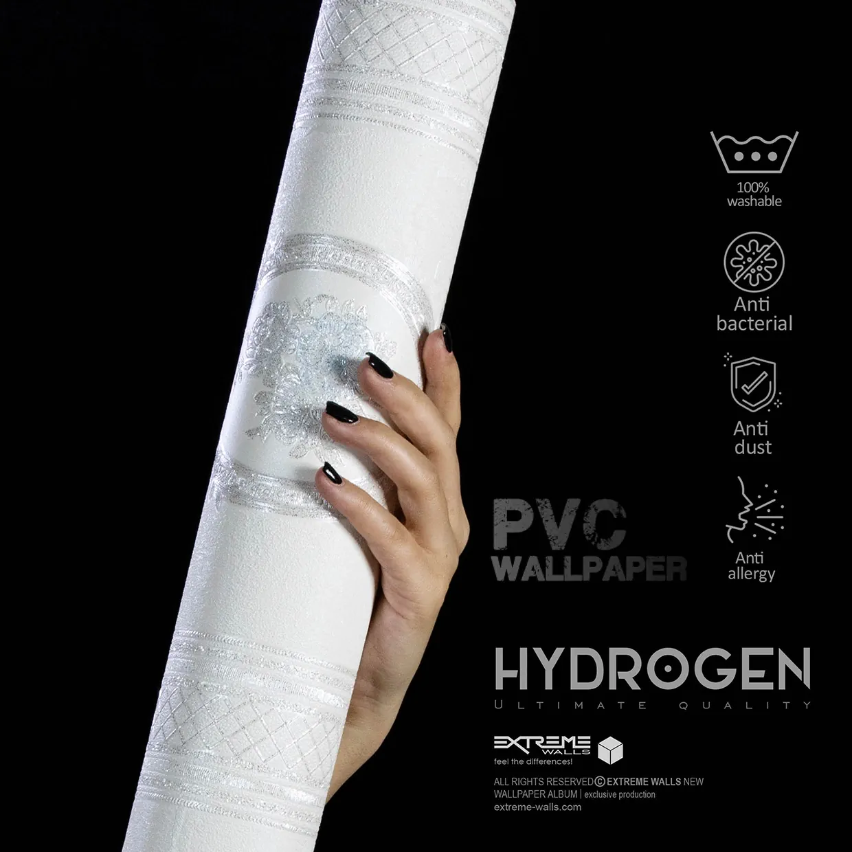 در طراحی این کاغذ دیواری از آلبوم هیدروژن رنگهای سبز کله غازی و رگههایی از رنگ مشکی به کار رفته است که میتواند جلوهای خاص به فضاهایی بدهد که از این کاغذ دیواری در طراحی آن استفاده میشود.