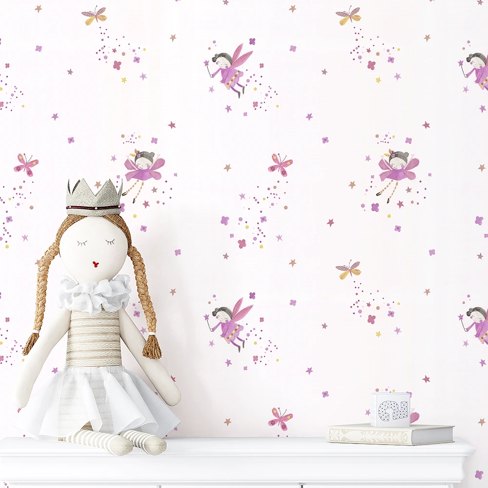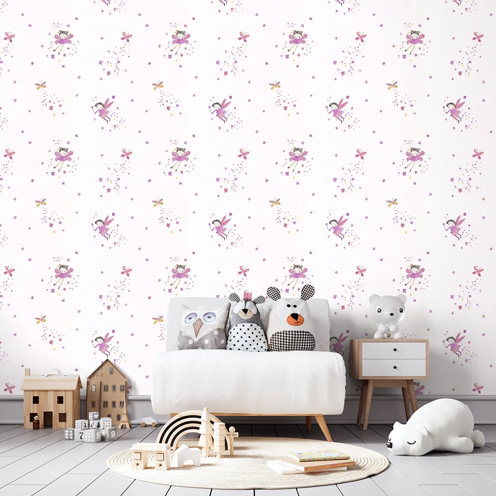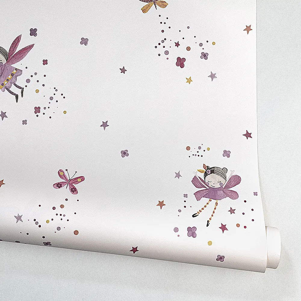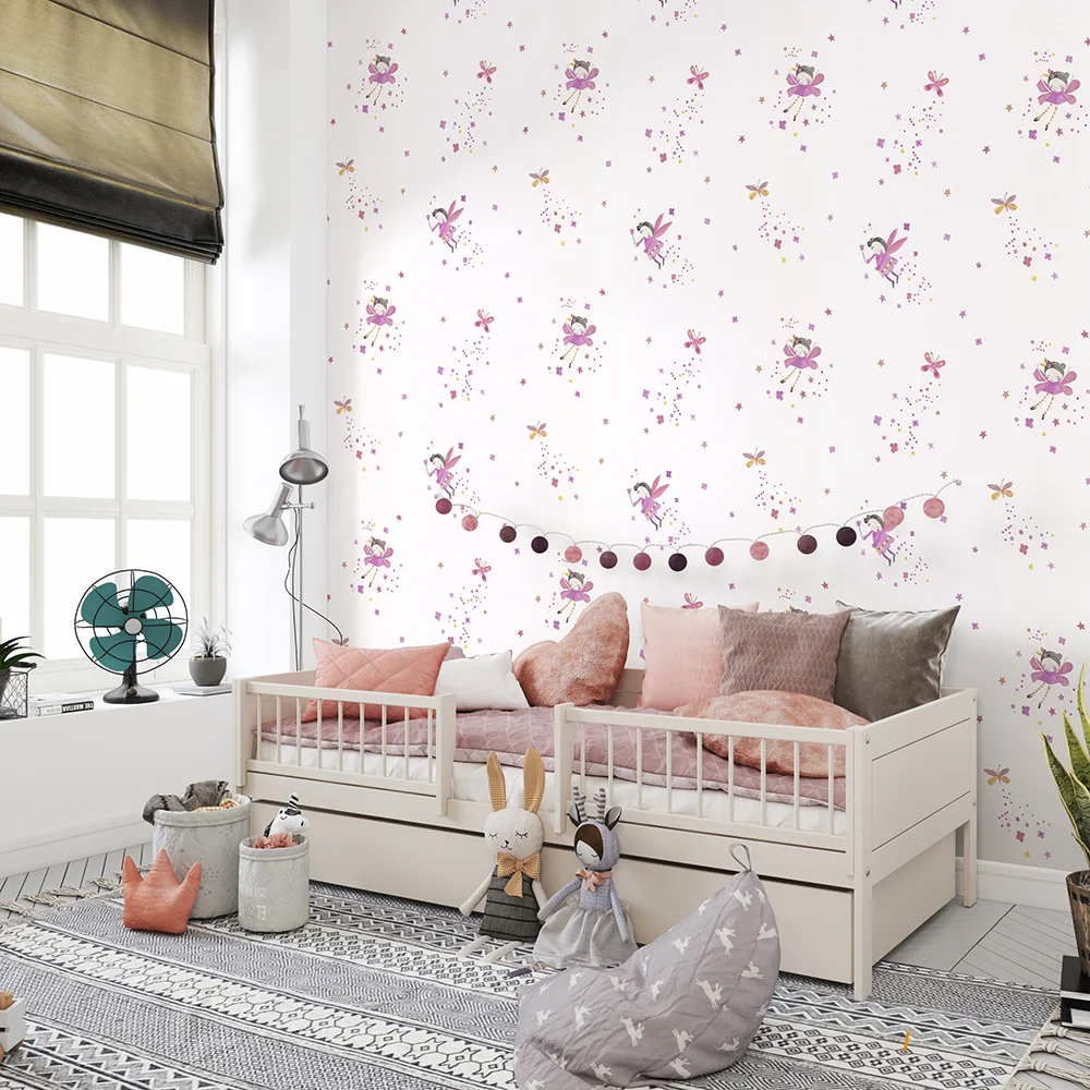 این طراحی ترکیبی از فانتزی و لطافت کودکانه است که پالت رنگی (طیفهای مختلف صورتی) در بر دارد؛ پریهای جادویی برای بچهها تداعیگر قصهها و رویاهای شبانهاند و پروانهها و ستارههای رنگی، محیط را پر از زندگی و نشاط میکنند. استفاده از این کاغذ دیواری در اتاق کودک باعث میشود فضا تنها یک محل خواب نباشد، بلکه به دنیای تخیل و بازی تبدیل شود.