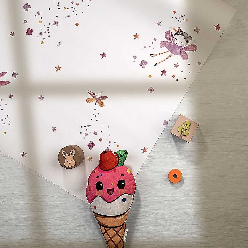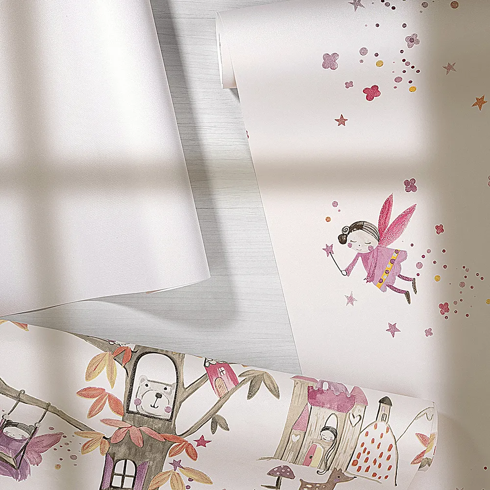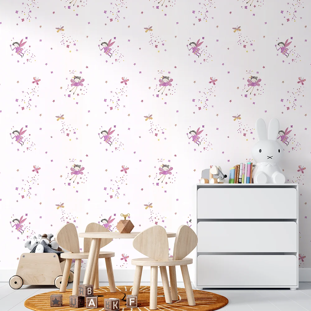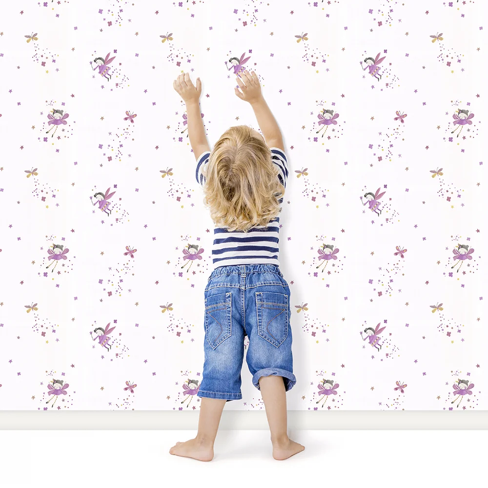 این طراحی ترکیبی از فانتزی و لطافت کودکانه است که پالت رنگی (طیفهای مختلف صورتی) در بر دارد؛ پریهای جادویی برای بچهها تداعیگر قصهها و رویاهای شبانهاند و پروانهها و ستارههای رنگی، محیط را پر از زندگی و نشاط میکنند. استفاده از این کاغذ دیواری در اتاق کودک باعث میشود فضا تنها یک محل خواب نباشد، بلکه به دنیای تخیل و بازی تبدیل شود.