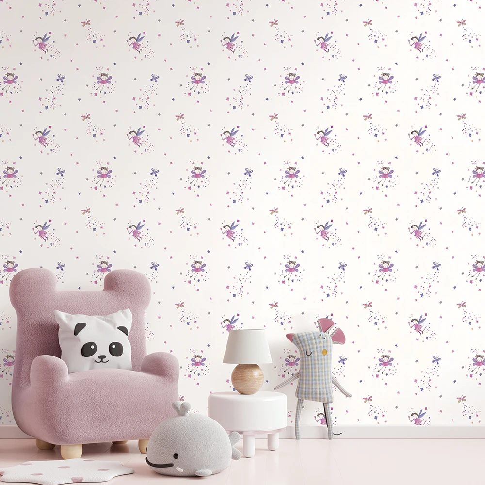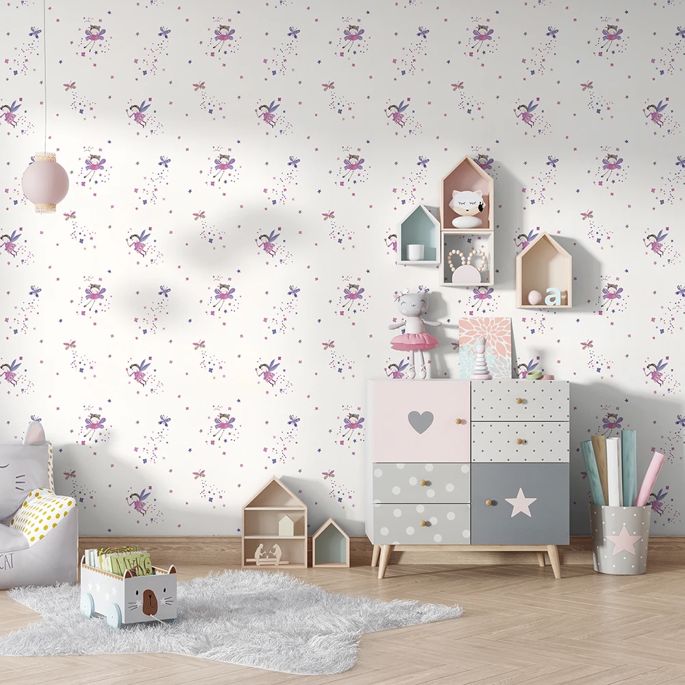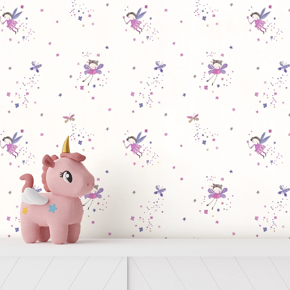 این طراحی ترکیبی از فانتزی و لطافت کودکانه است که پالت رنگی بنفش، یاسی و صورتی را در بر دارد؛ پریهای جادویی برای بچهها تداعیگر قصهها و رویاهای شبانهاند و پروانهها و ستارههای رنگی، محیط را پر از زندگی و نشاط میکنند. استفاده از این کاغذ دیواری در اتاق کودک باعث میشود فضا تنها یک محل خواب نباشد، بلکه به دنیای تخیل و بازی تبدیل شود.