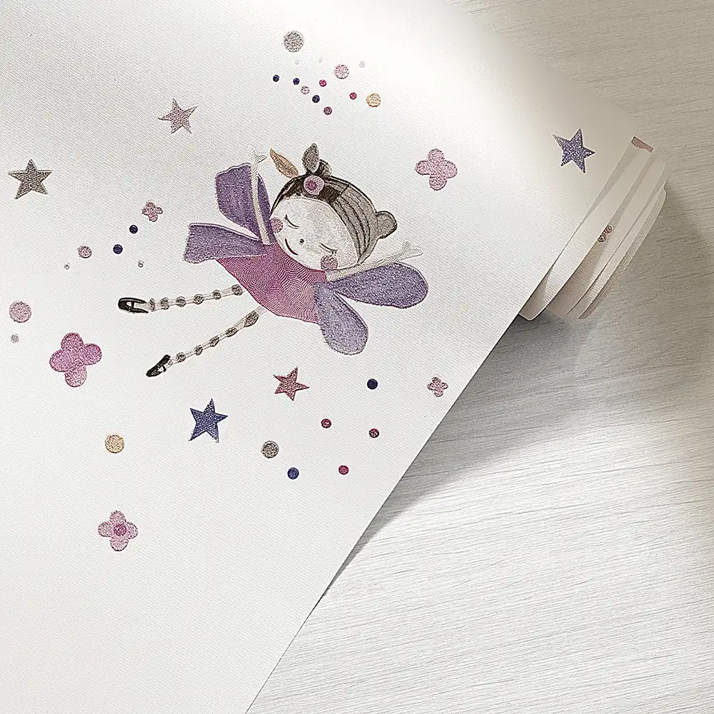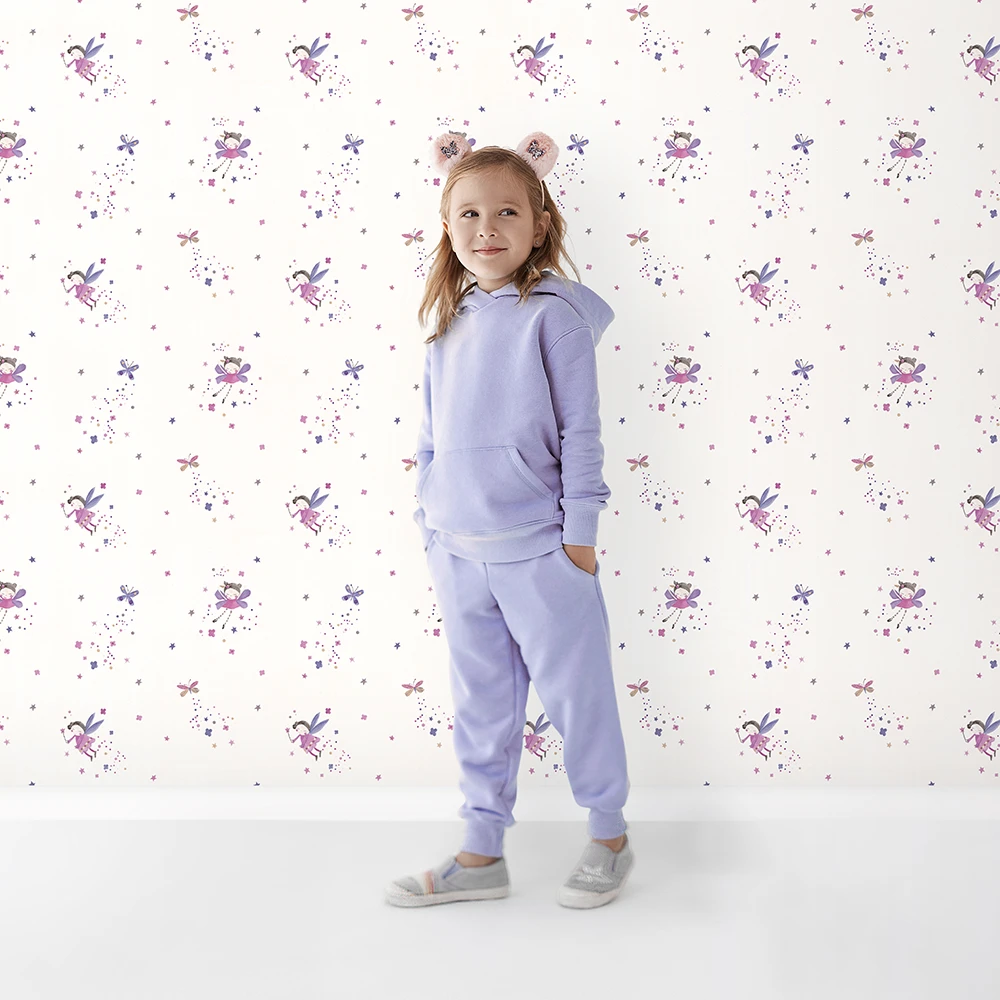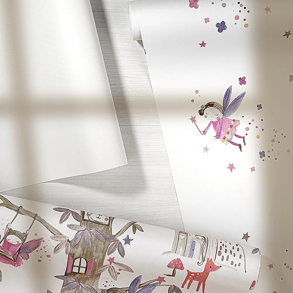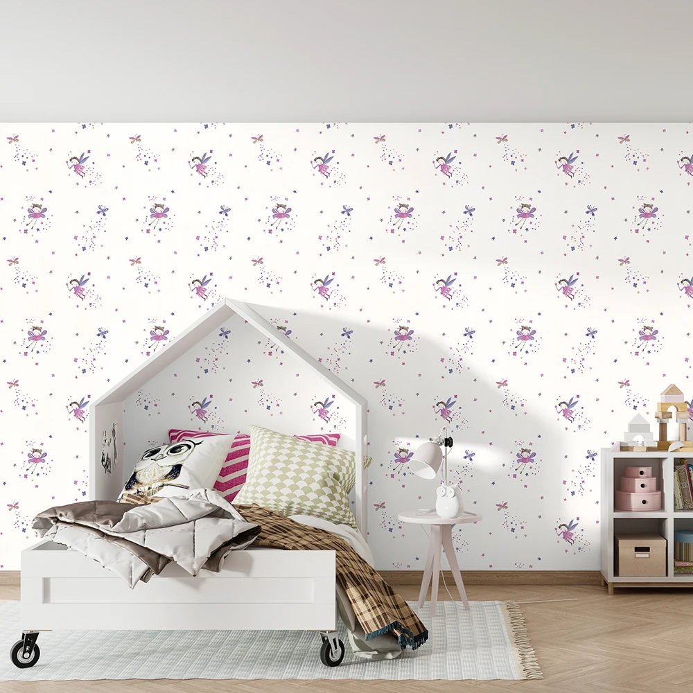 این طراحی ترکیبی از فانتزی و لطافت کودکانه است که پالت رنگی بنفش، یاسی و صورتی را در بر دارد؛ پریهای جادویی برای بچهها تداعیگر قصهها و رویاهای شبانهاند و پروانهها و ستارههای رنگی، محیط را پر از زندگی و نشاط میکنند. استفاده از این کاغذ دیواری در اتاق کودک باعث میشود فضا تنها یک محل خواب نباشد، بلکه به دنیای تخیل و بازی تبدیل شود.