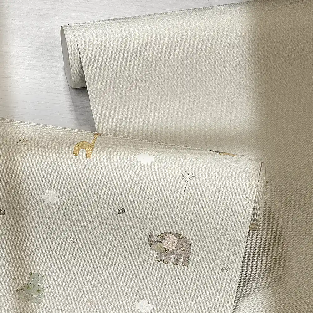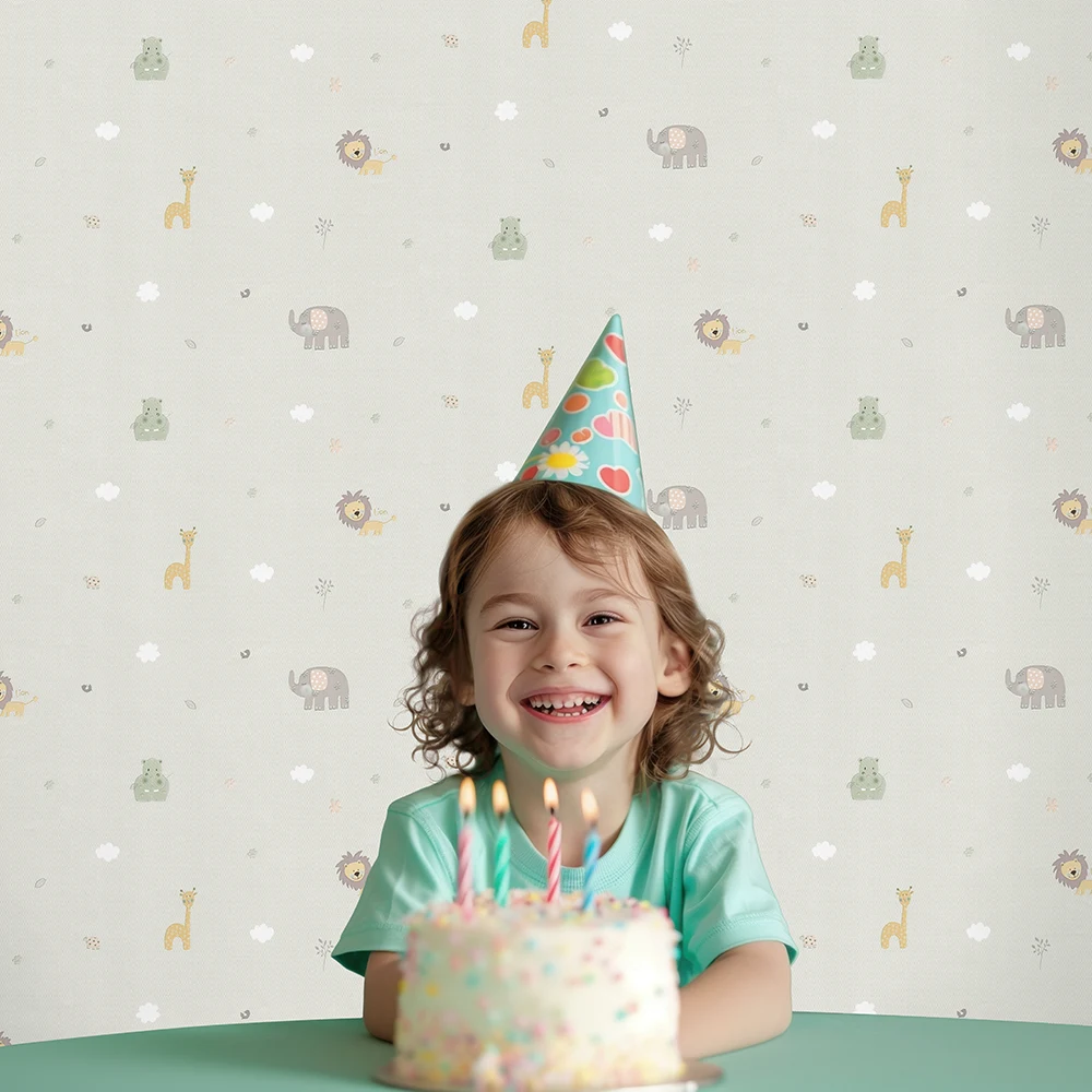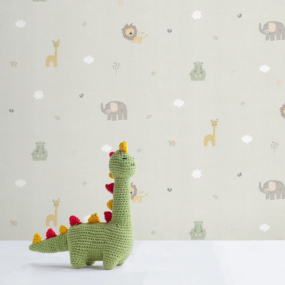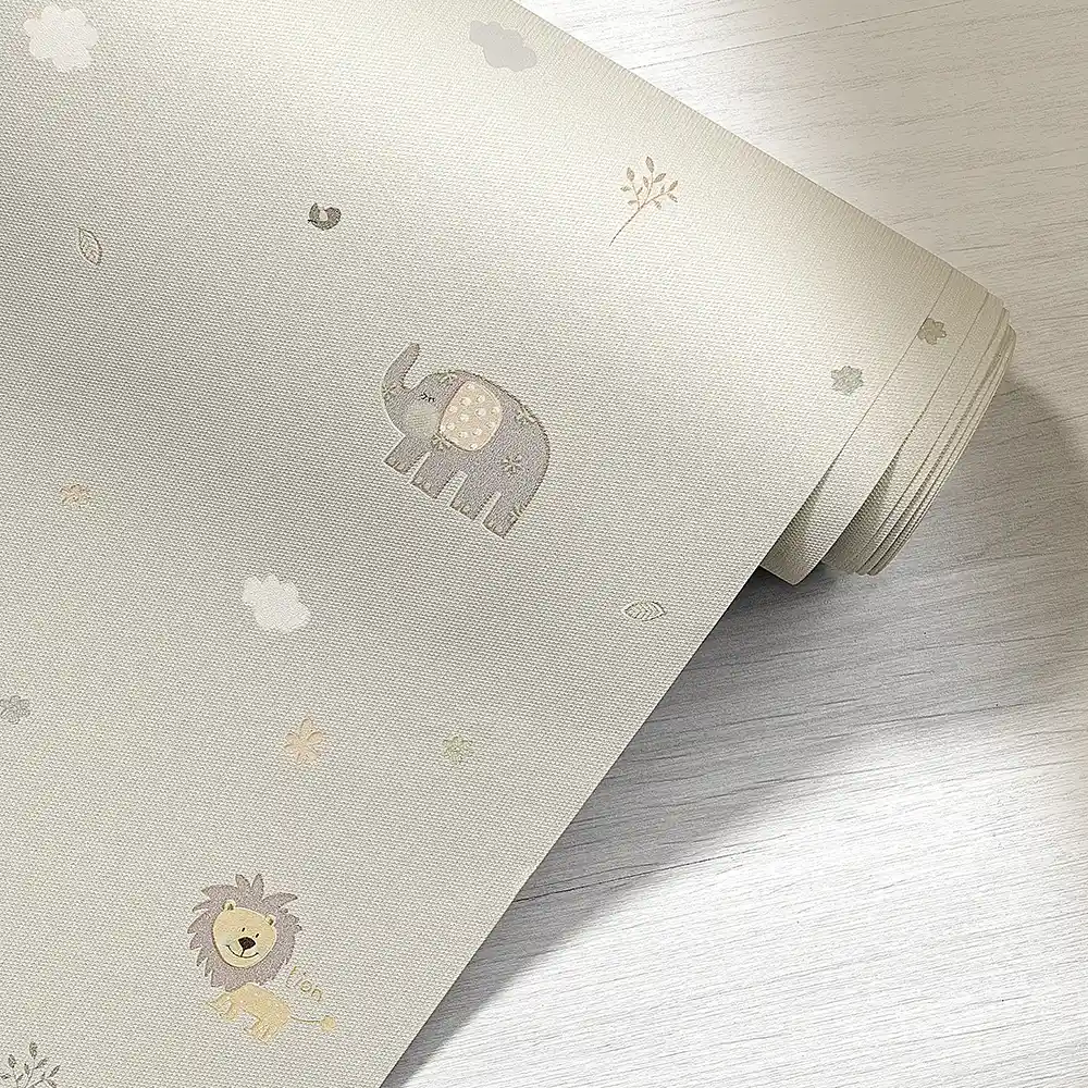 کاغذ دیواری کودک کد 12065 یکی از شیرینترین و دلنشینترین طرحهای آلبوم پمپو است؛ این کاغذ دیواری بچگانه با پس زمینه سبز پاستلی و ملایم، اتاق کودک را بزرگتر، روشن و دلبازتر نشان میدهد. روی این زمینهی آرام و کمرنگ، حیوانات دوستداشتنی جنگل مثل شیرهای کوچک و بامزه با یالهای رنگی و روشن، فیلهای کوچک با بدن و گوشهای طرحدار، زرافههایی با خالهای ریز و اسب آبیهای خندان به صورت پراکنده قرار گرفتهاند. در کنار این حیوانات، جزییات ریزی مثل ابرهای سفید، برگهای کوچک، شاخههای نازک و گلهای ساده و ظریف، حال و هوایی پر از لطافت و خیالپردازی را به طرح میافزایند. ترکیب این عناصر، حس یک دنیای کوچک و داستانی را برای کودک تداعی میکند، گویی دیوارها به صفحهای از یک کتاب مصور کودکانه تبدیل شدهاند.