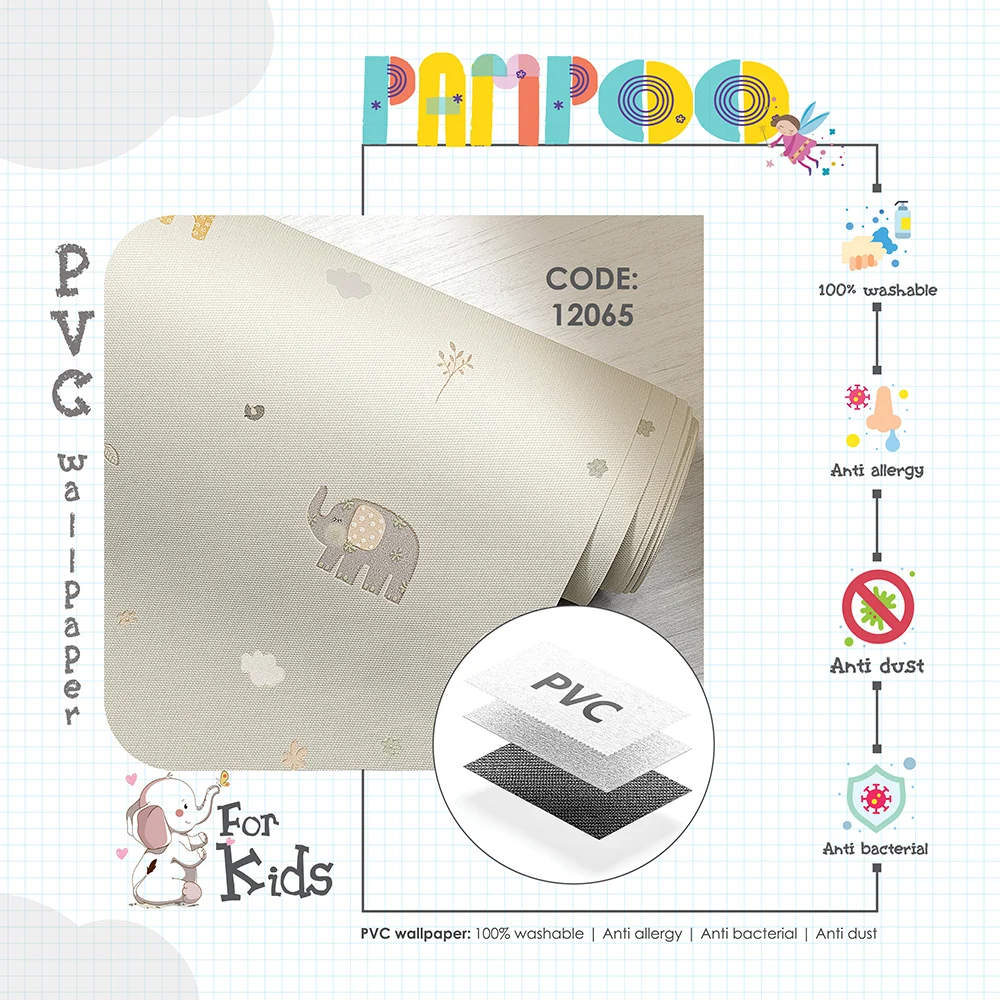 آلبوم کاغذ دیواری کودک پمپو، مجموعهای صد در صد وینیل (PVC)، قابل شستشو، ضد حساسیت (آنتی آلرژی)، ضد گرد و غبار (آنتی داست)، و مقاوم و بادوام در برابر انواع لکهها و آسیبهاست؛