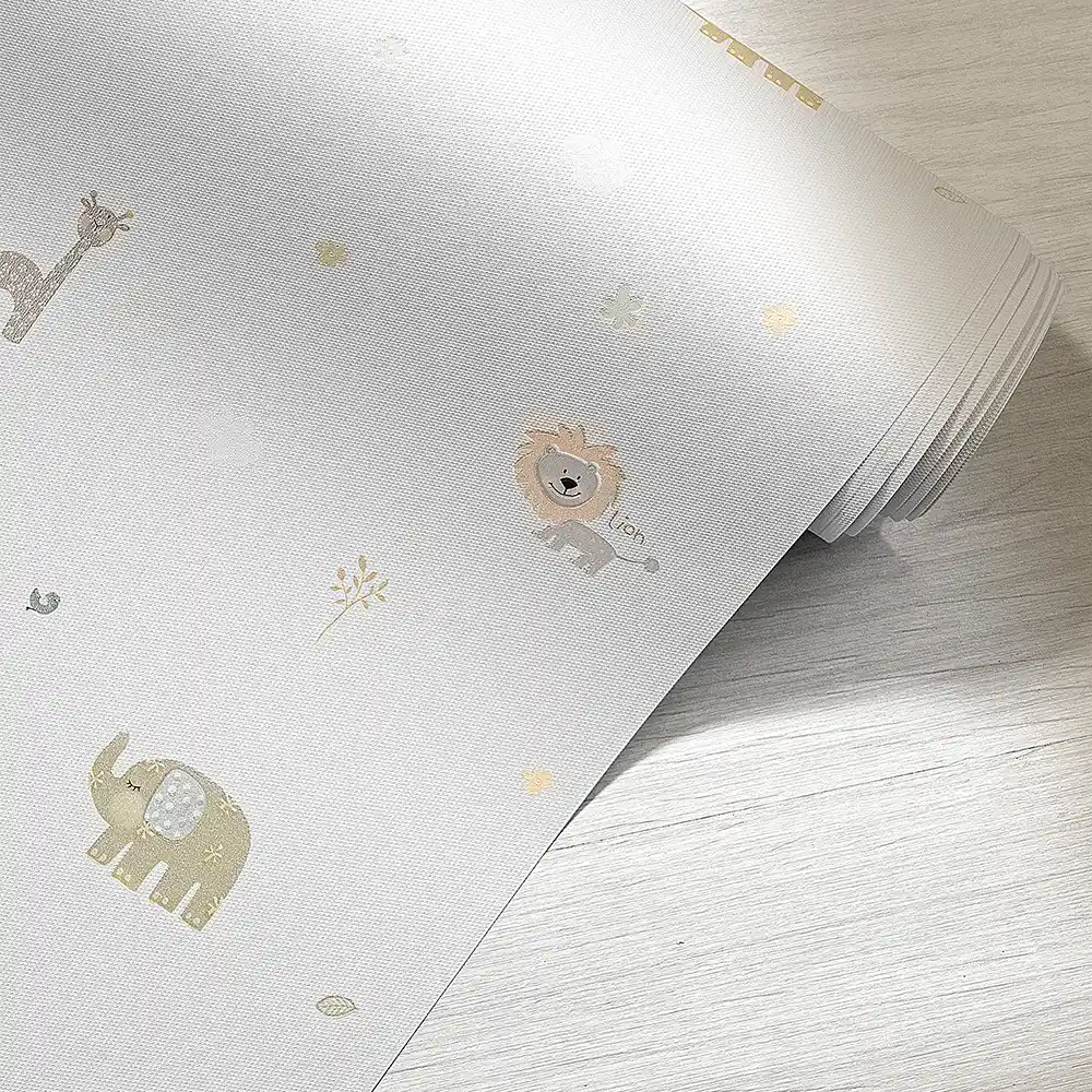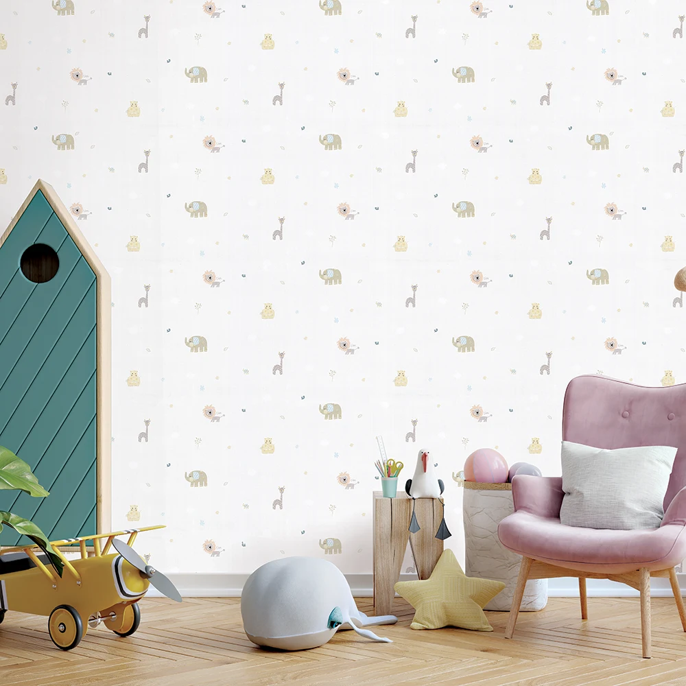 معرفی کاغذ دیواری کودک طرح دنیای حیوانات | سفید کد 12067
