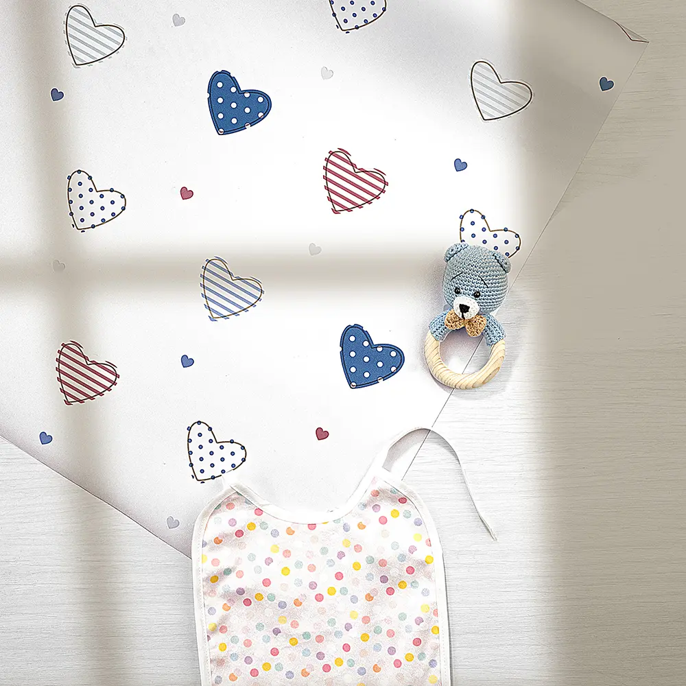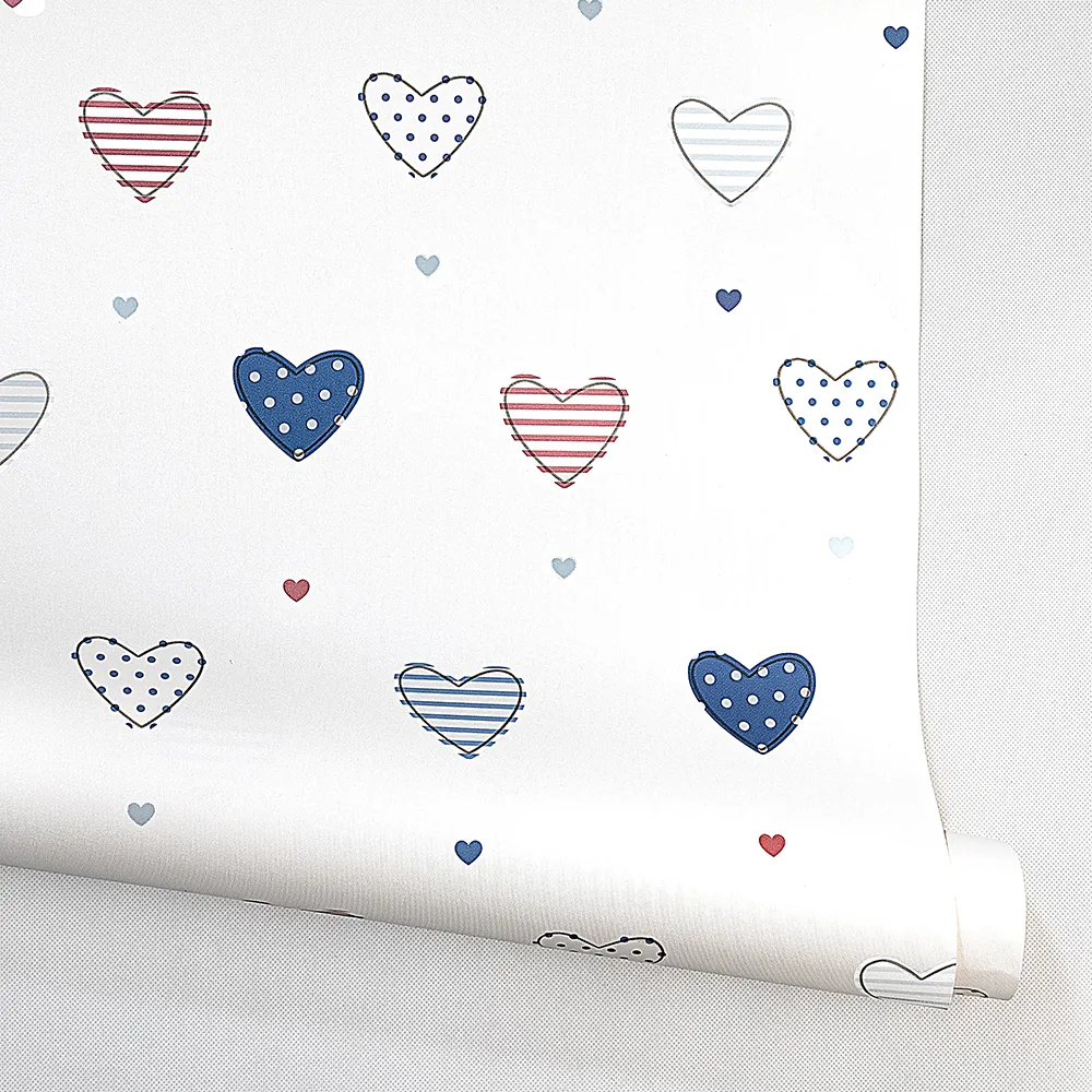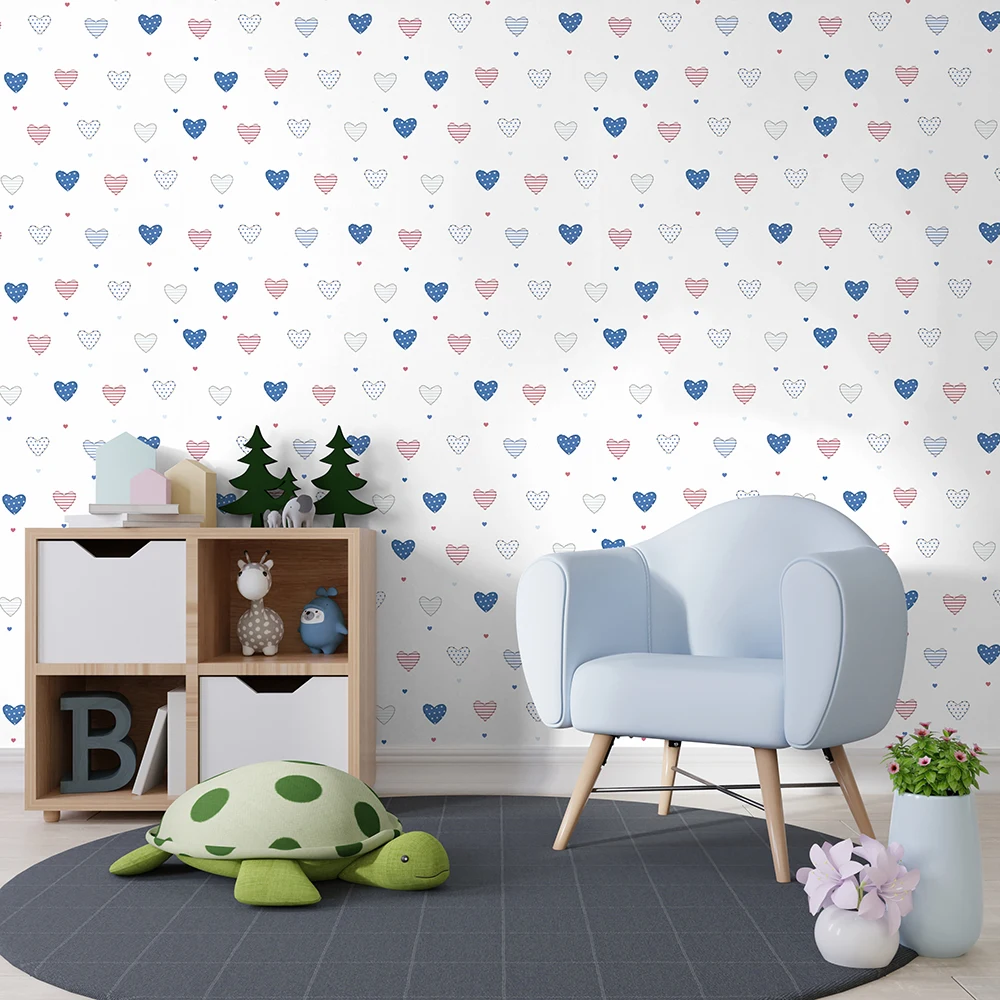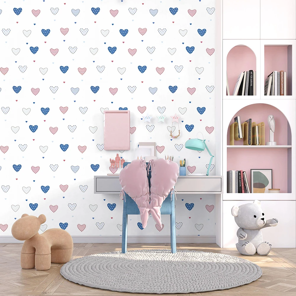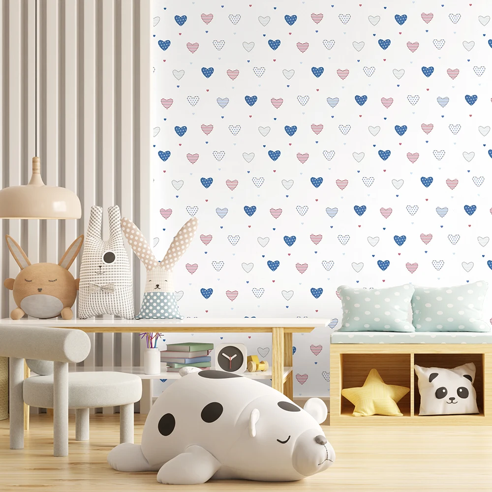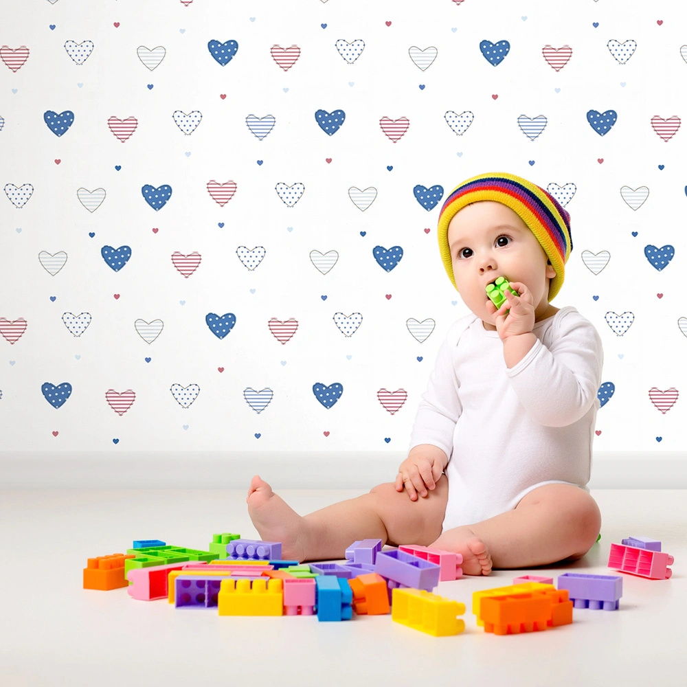 این مدل از کاغذ دیواری اتاق کودک انتخابی عالی برای والدینی است که میخواهند فضای اتاق فرزندشان هم آرامشبخش باشد و هم انرژی مثبت منتقل کند. رنگهای ملایم و روشن به بزرگتر شدن بصری اتاق کمک کرده و طرح قلبی آن برای دختران و پسران خردسال مناسب است.