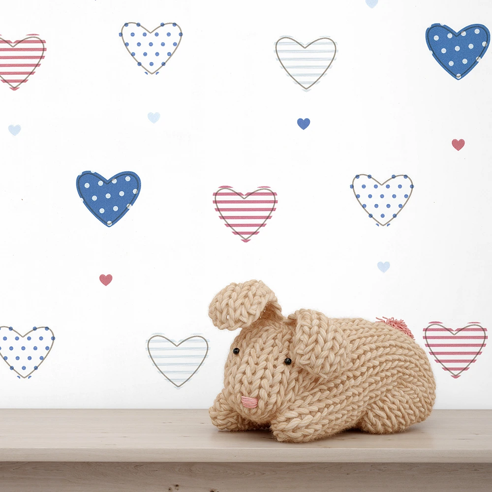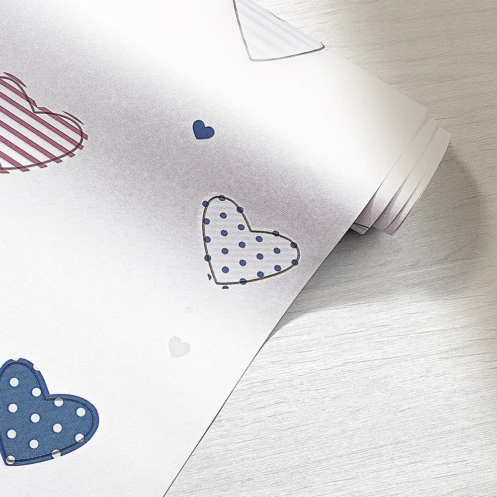 کاغذ دیواری کودک کد 12089 با طرحی شاد و دوستداشتنی از قلبهای رنگی طراحی شده است. روی زمینه سفید و روشن این کاغذ دیواری بچگانه، قلبهایی با الگوهای متنوع مثل خال خال آبی و راه راه قرمز و آبی، و قلبهای ساده در رنگهای ملایم دیده میشوند. ترکیب این قلبها با سایههای کوچک قرمز و آبی باعث میشود فضا حال و هوایی پرانرژی، دلنشین و کودکانه پیدا کند.