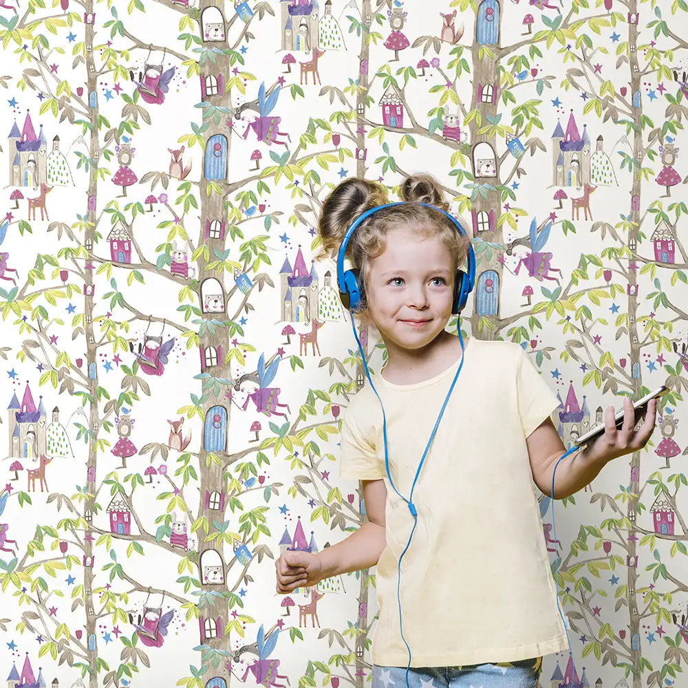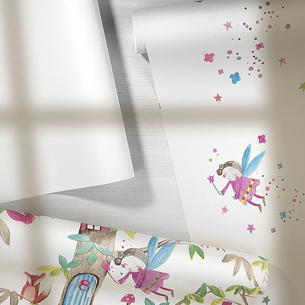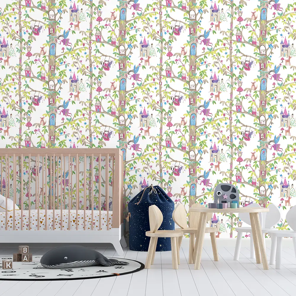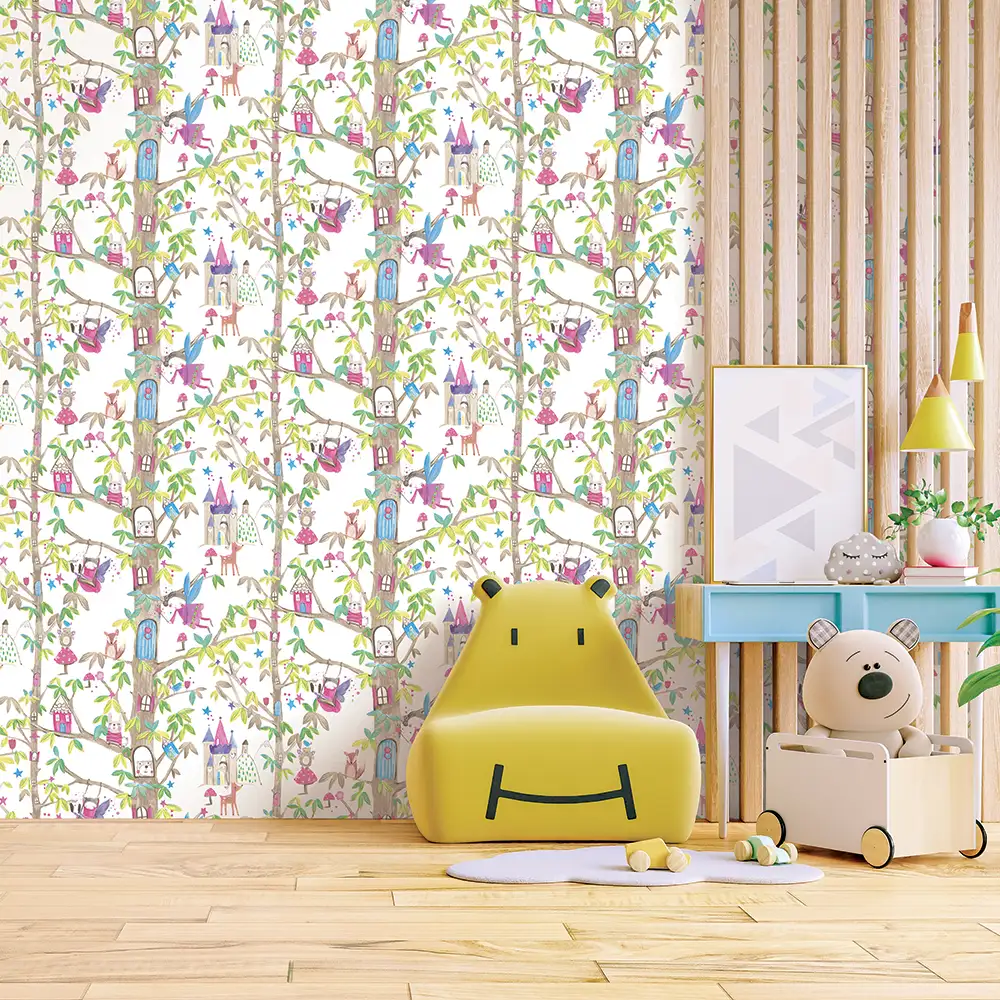 معرفی کاغذ دیواری کودک طرح جنگل پریان | چند رنگ کد 12053