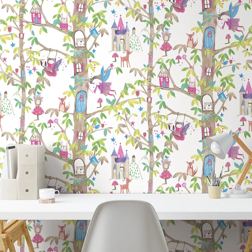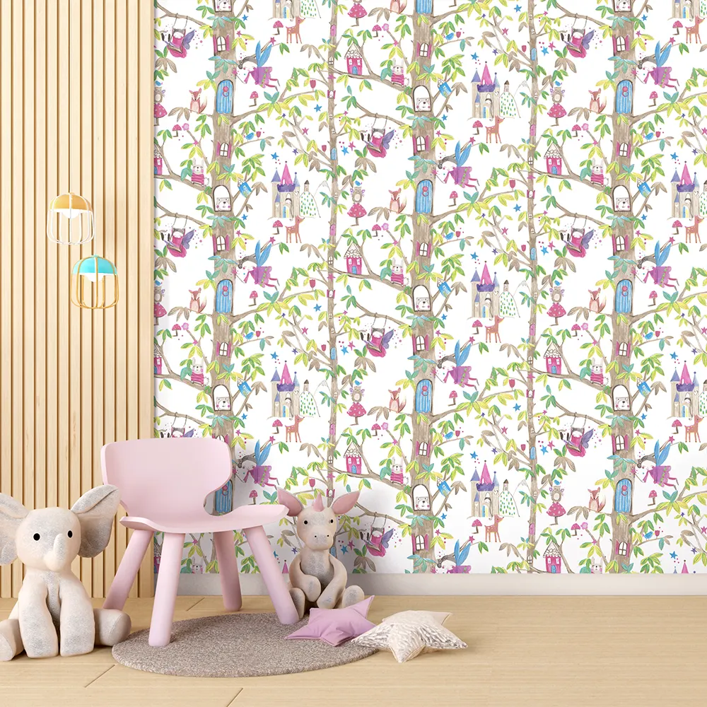 کاغذ دیواری کودک طرح جنگل پریان | چند رنگ کد 12053