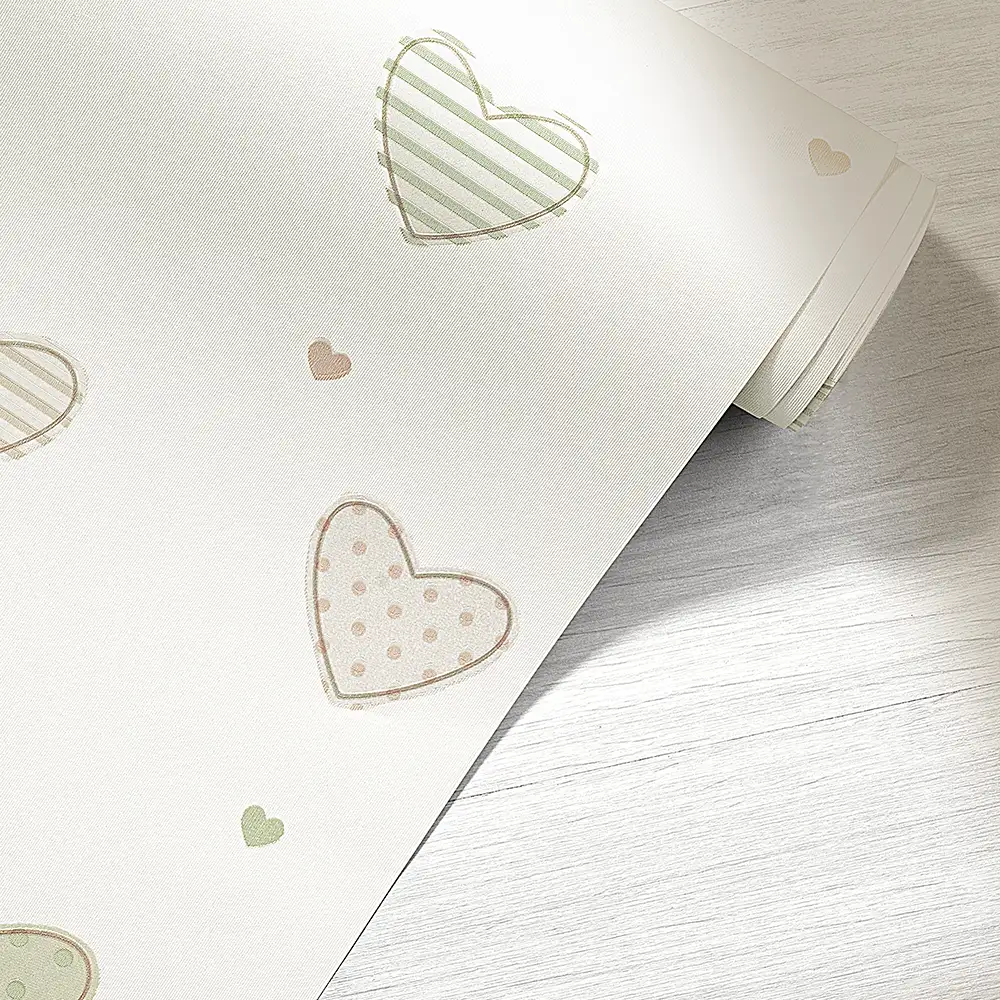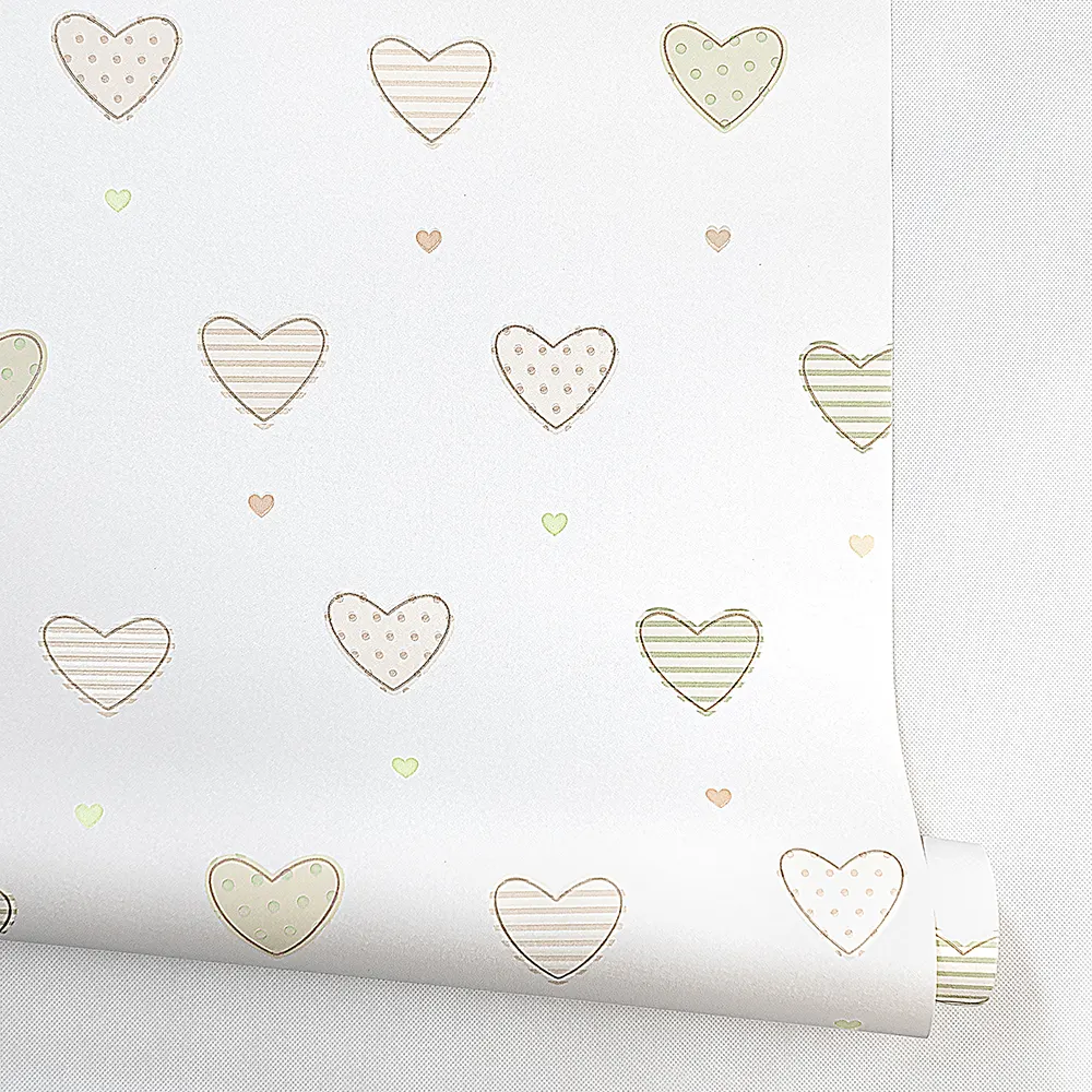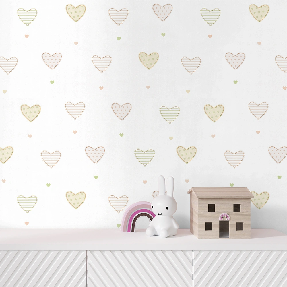 کاغذ دیواری کودک طرح قلبهای رنگی | کرم کد 12092