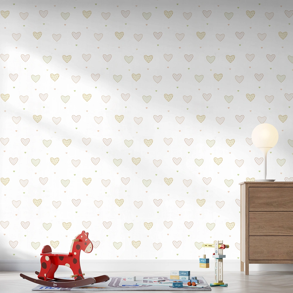 کاغذ دیواری کودک طرح قلبهای رنگی کد 12095