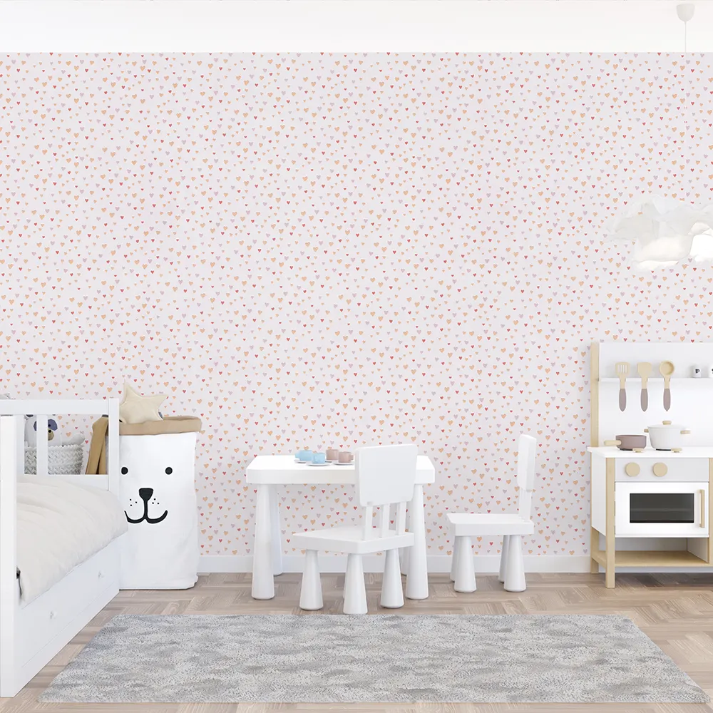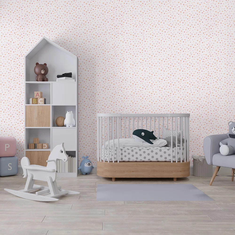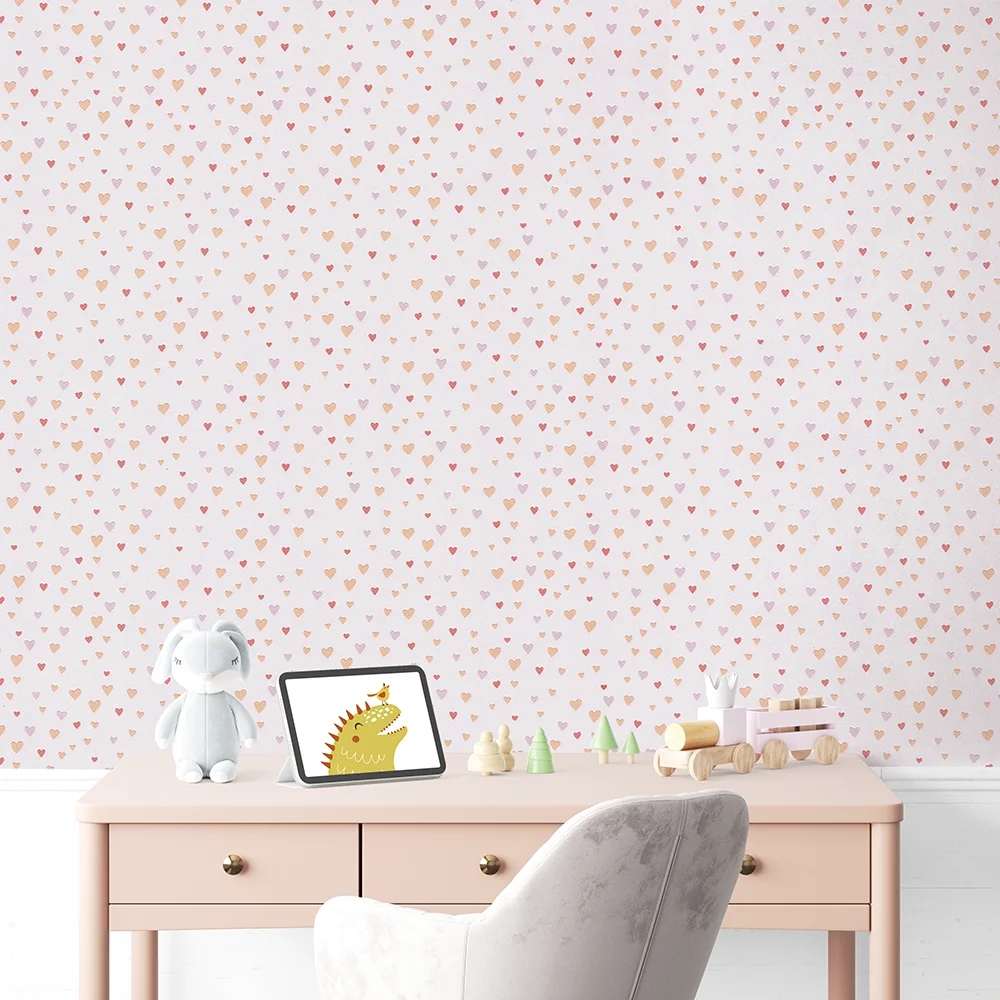 معرفی کاغذ دیواری کودک طرح قلبی | صورتی کد 12024