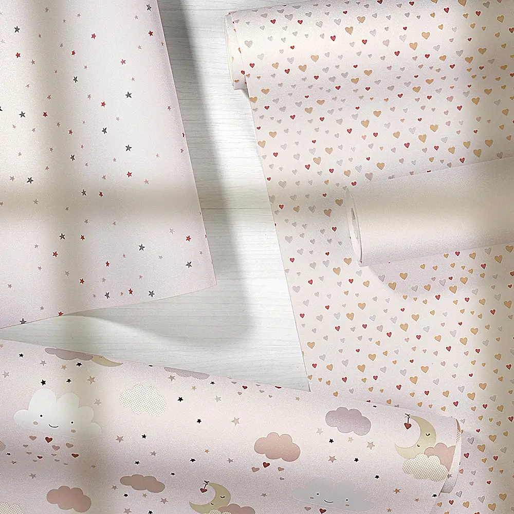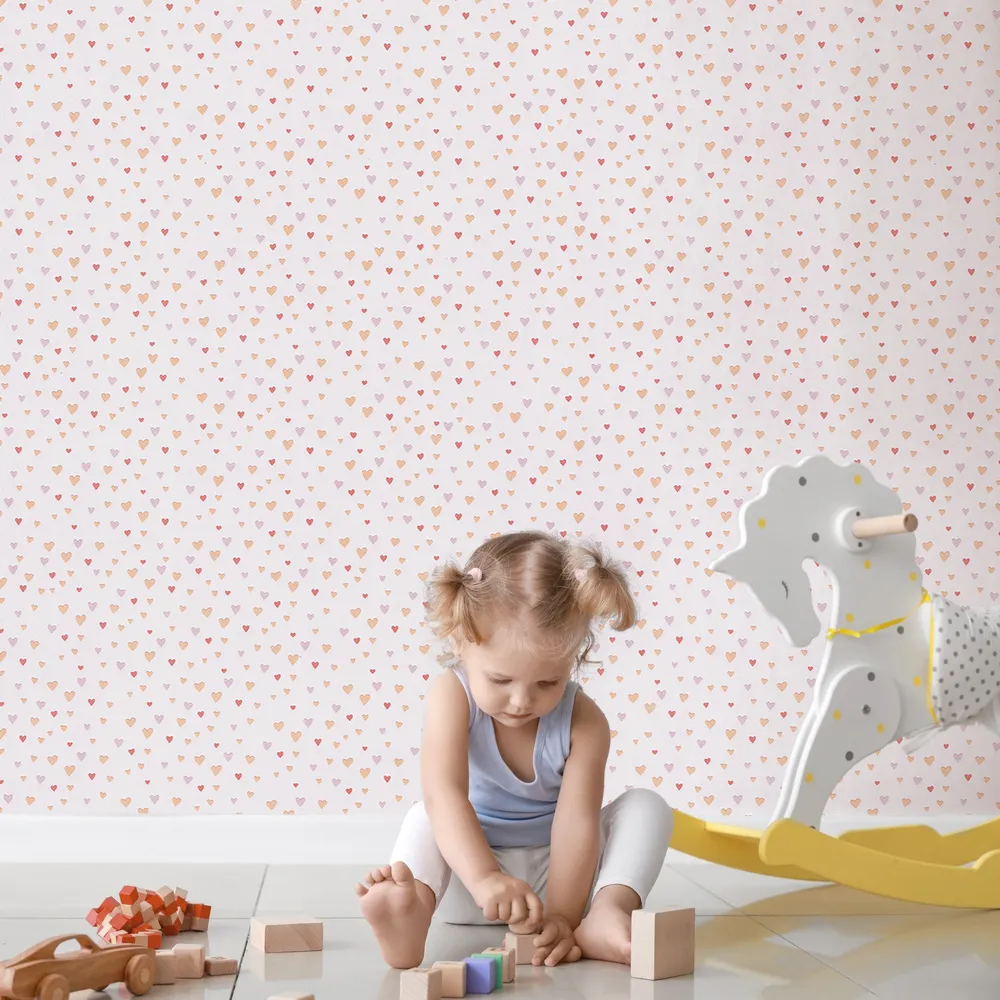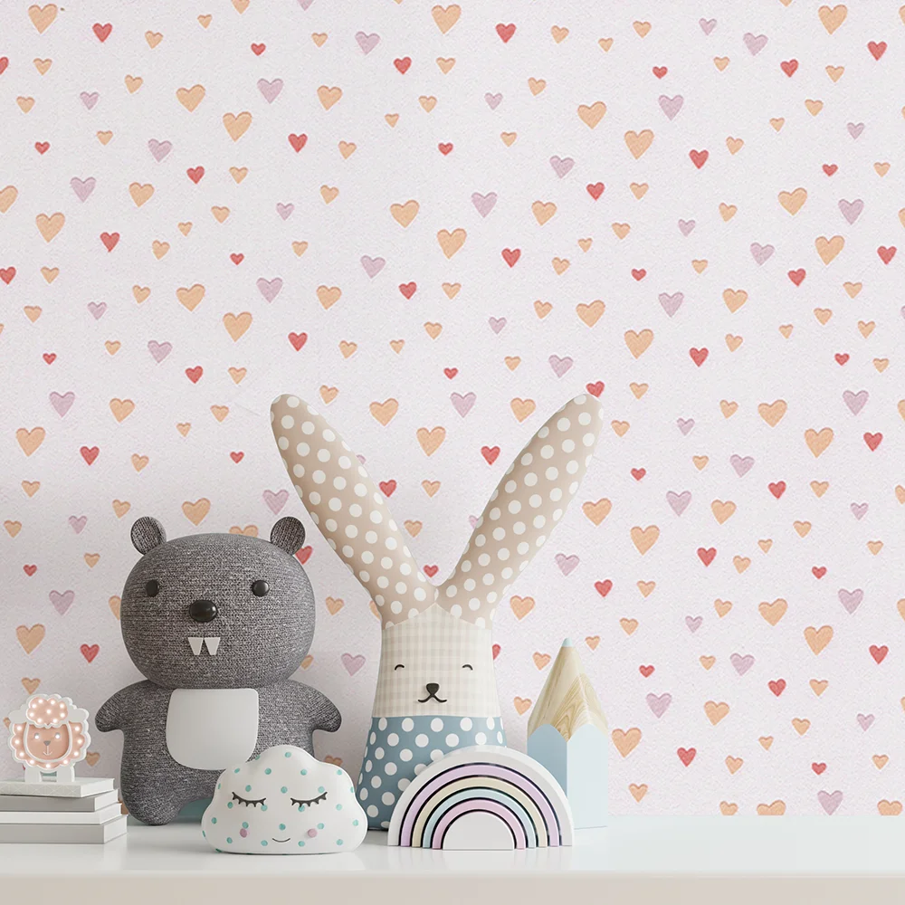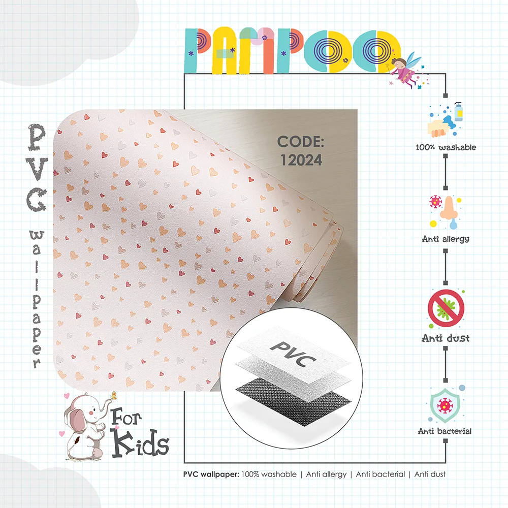 معرفی کاغذ دیواری کودک طرح قلبی | صورتی کد 12024