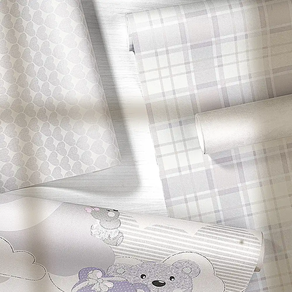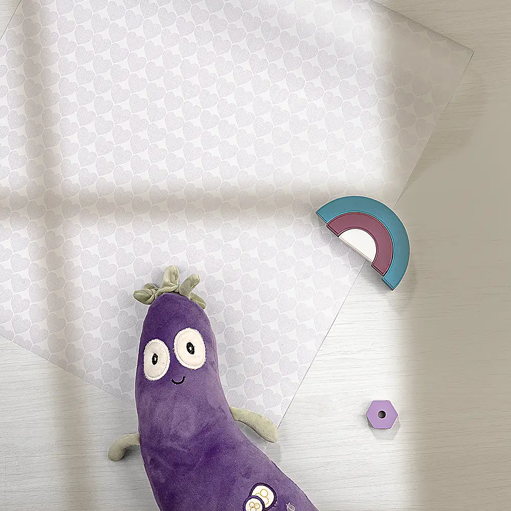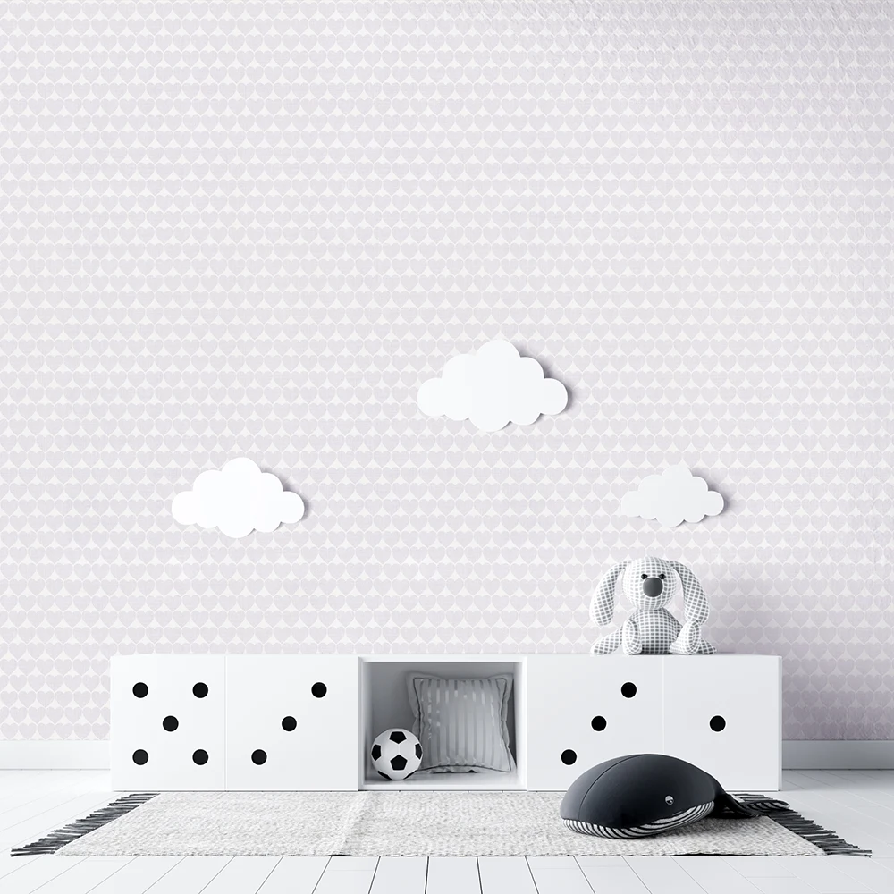 معرفی کاغذ دیواری کودک طرح قلب | یاسی / سفید کد 12084