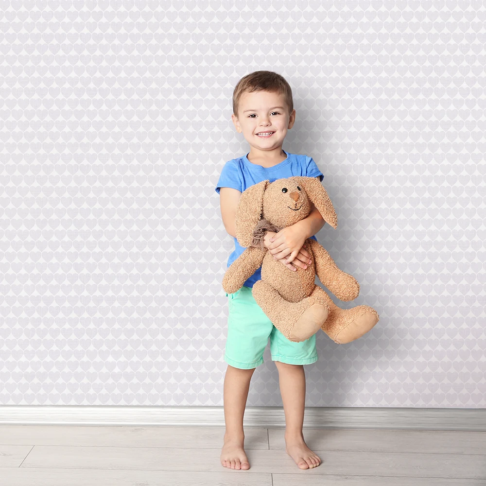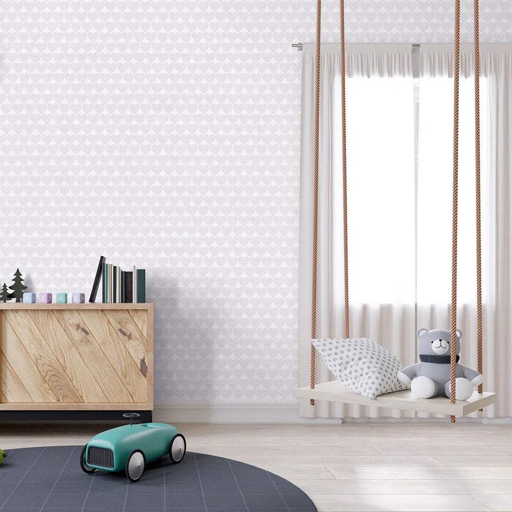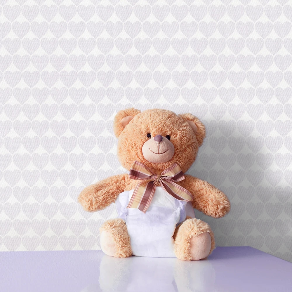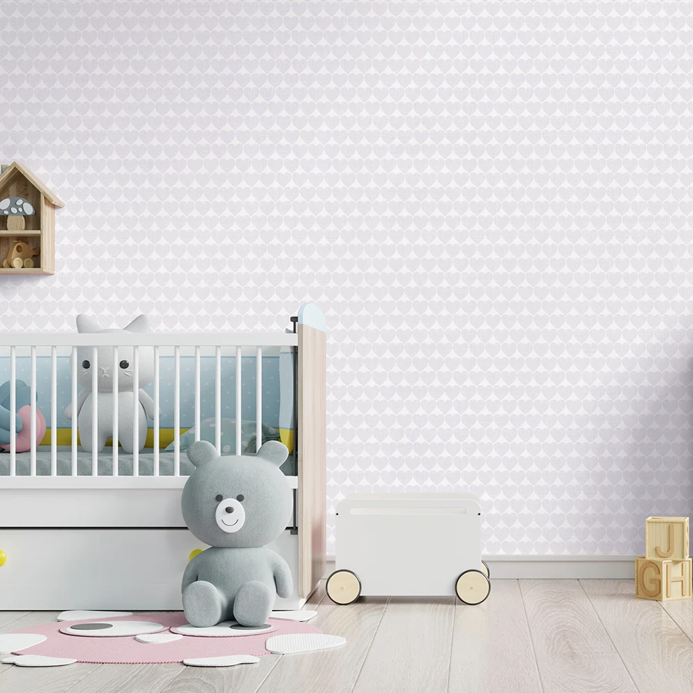 کاغذ دیواری کودک طرح قلب | یاسی / سفید کد 12084