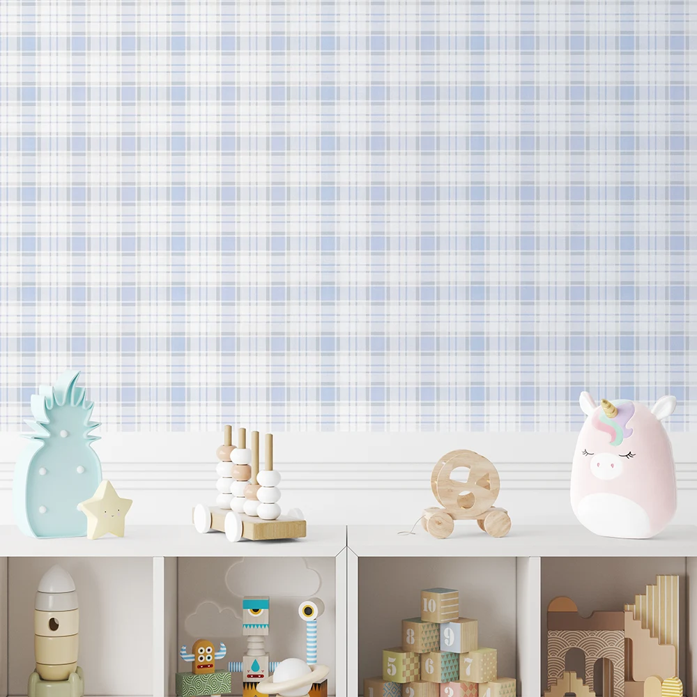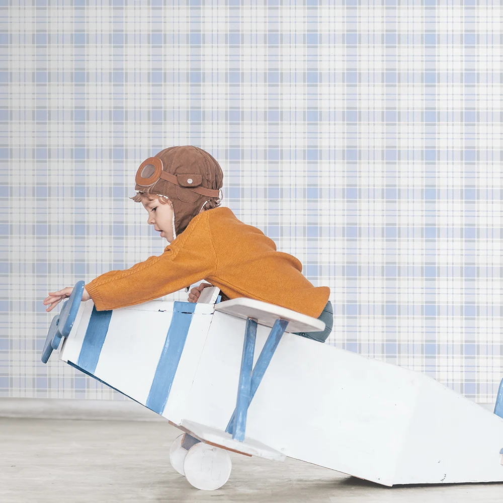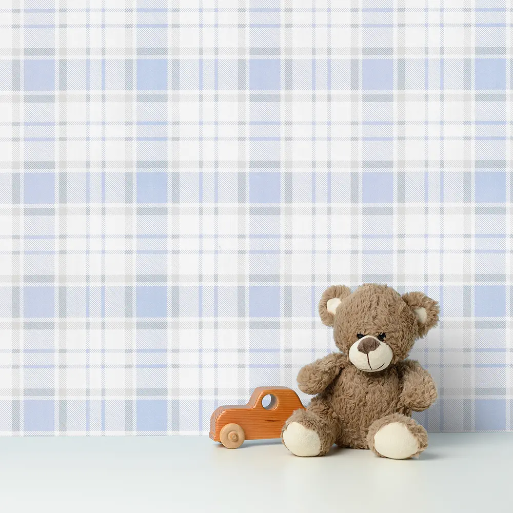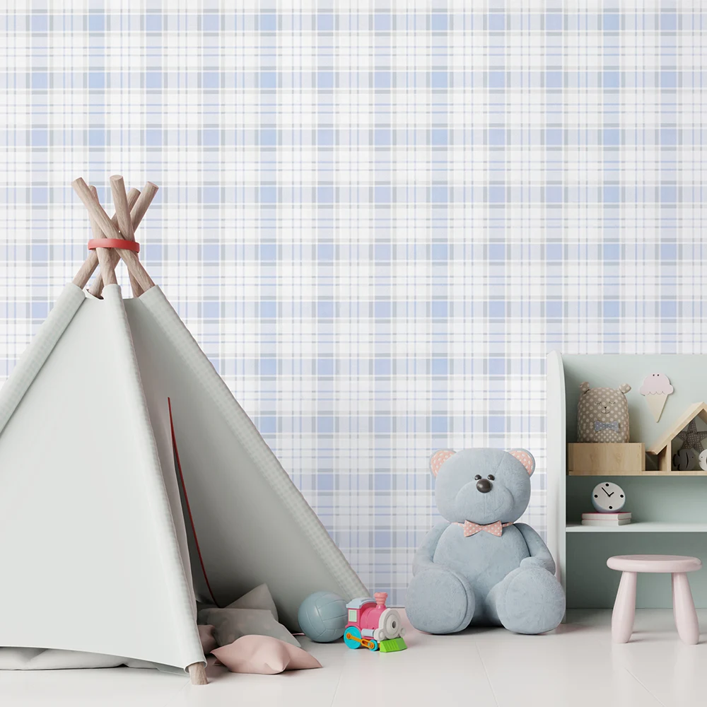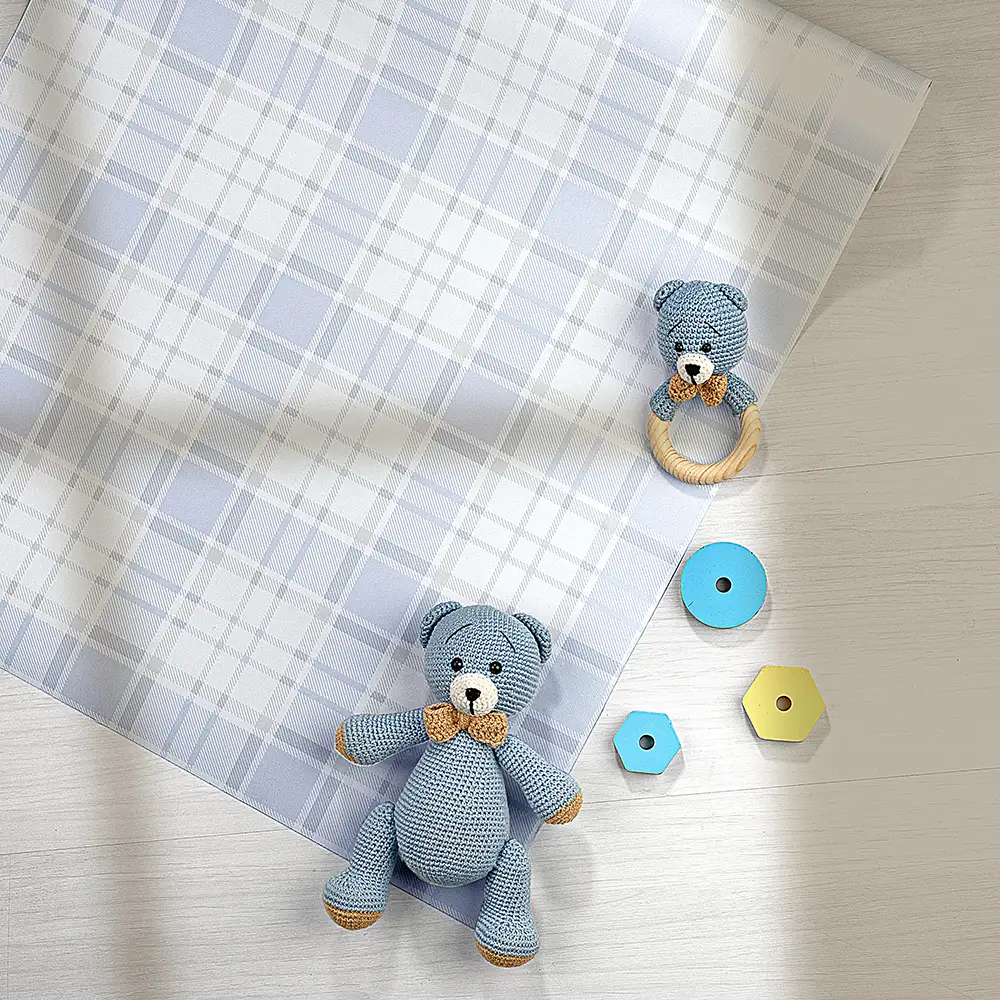 معرفی کاغذ دیواری کودک طرح چهارخونه | آبی کد 12079
