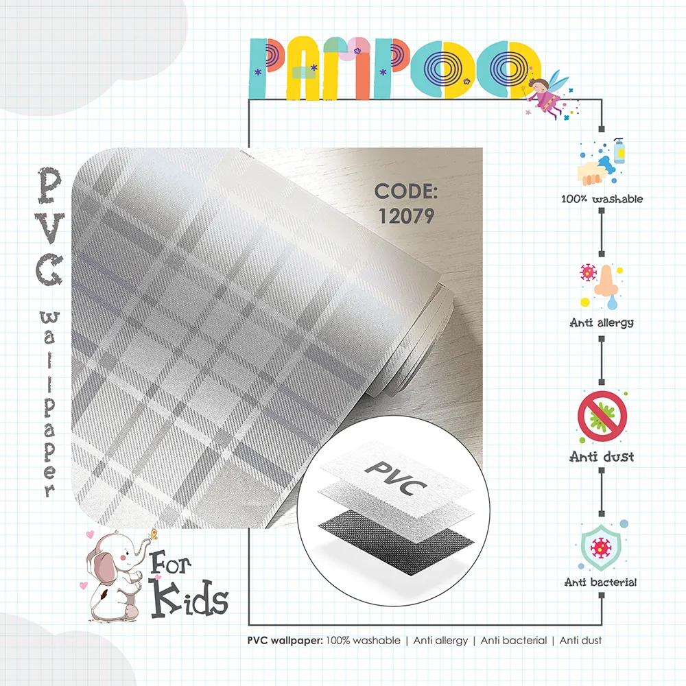 آلبوم کاغذ دیواری کودک پمپو، مجموعهای صد در صد وینیل (PVC)، قابل شستشو، ضد حساسیت (آنتی آلرژی)، ضد گرد و غبار (آنتی داست)، و مقاوم و بادوام در برابر انواع لکهها و آسیبهاست؛