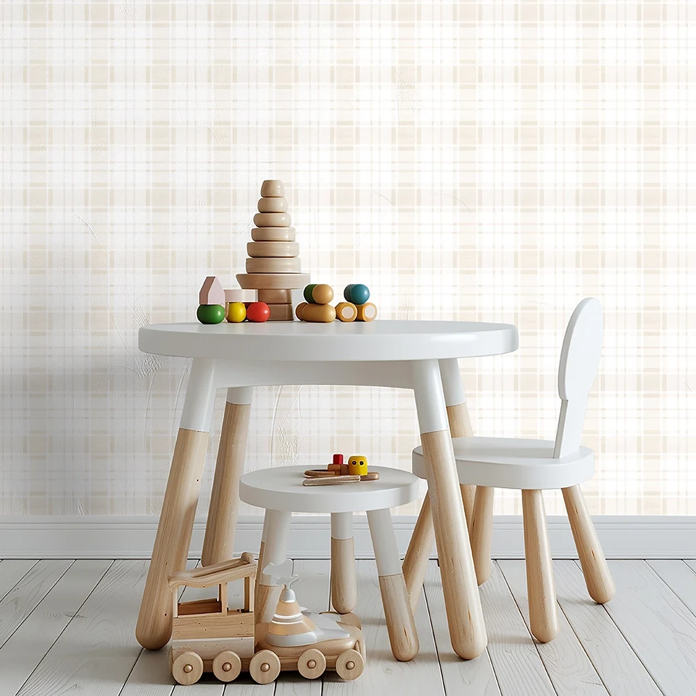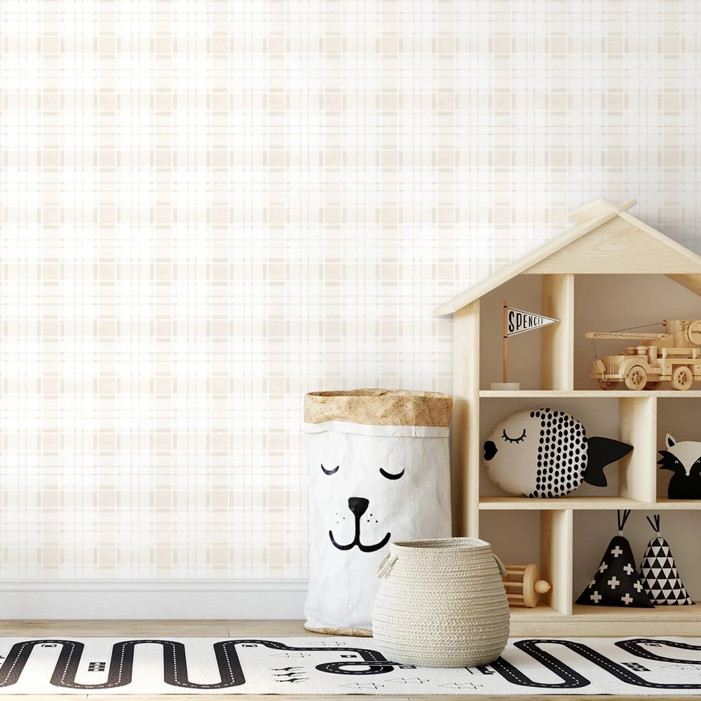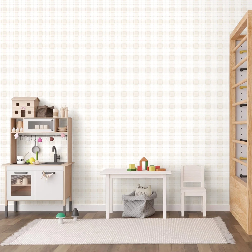 معرفی کاغذ دیواری کودک طرح چهارخونه | کرم کد 12075