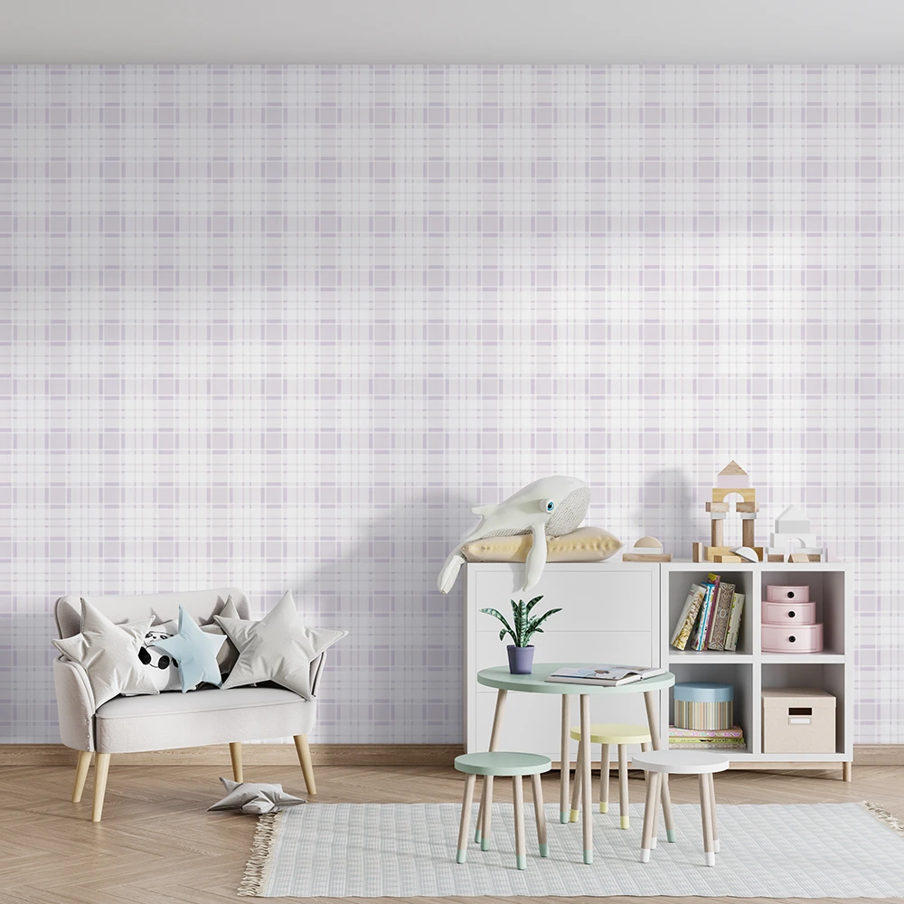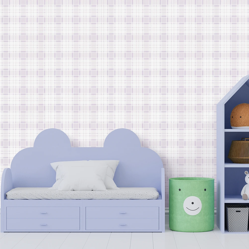 معرفی کاغذ دیواری کودک طرح چهارخونه | بنفش / یاسی کد 12083