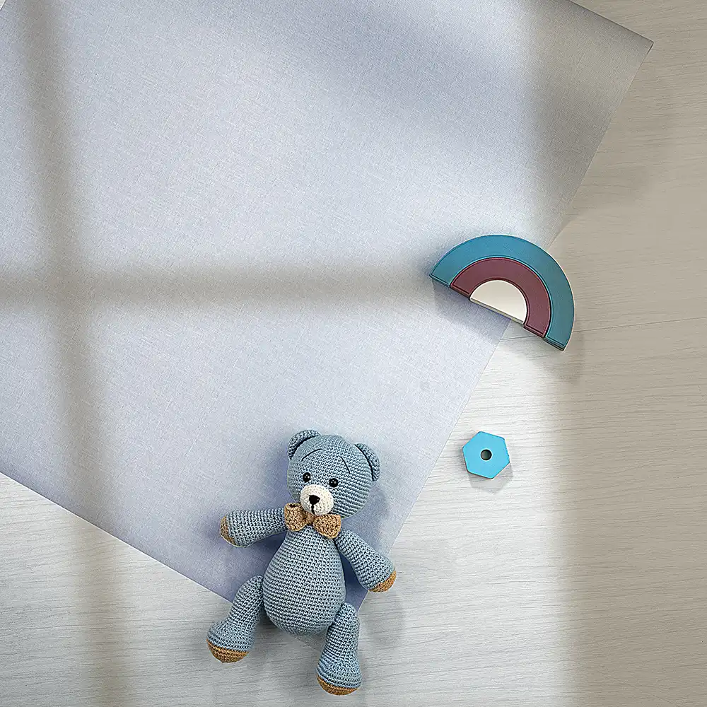 کاغذ دیواری کودک کد 12038 از آلبوم پمپو، یک گزینه‌ی ساده، ملایم و آرام‌بخش برای اتاق کودک است. رنگ آبی پاستلی و آسمانی آن، فضایی روشن و دلباز در اتاق ایجاد می‌کند و برای تمامی بخش‌های اتاق کودک، از دیوار پشت تخت تا سایر دیوارها مناسب می‌باشد. بافت ظریف و یکنواخت آن، علاوه بر زیبایی، حس گرما و راحتی را به اتاق می‌آورد و با سایر عناصر دکوراسیون اتاق کودک به راحتی هماهنگ می‌شود.