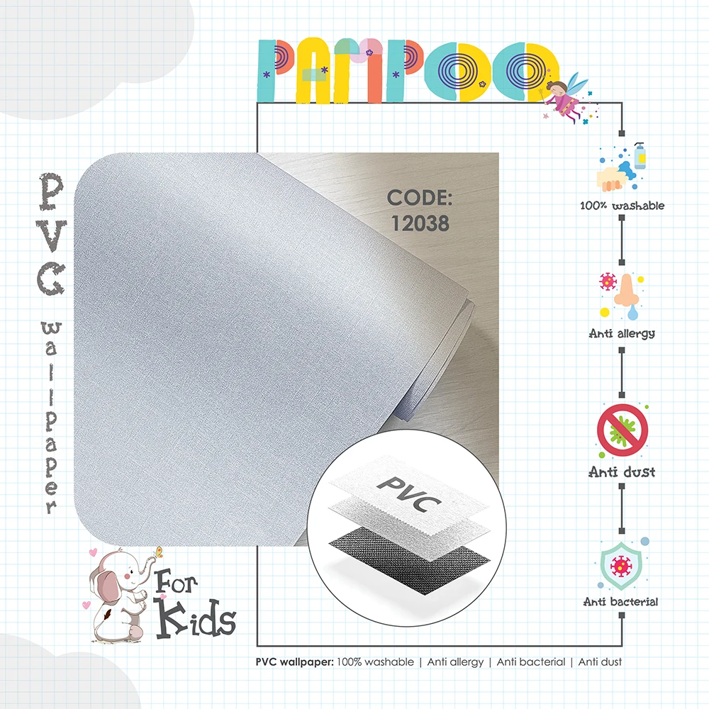 آلبوم کاغذ دیواری کودک پمپو، مجموعه‌ای صد در صد وینیل (PVC)، قابل شستشو، ضد حساسیت (آنتی آلرژی)، ضد گرد و غبار (آنتی داست)، و مقاوم و بادوام در برابر انواع لکه‌ها و آسیب‌هاست؛