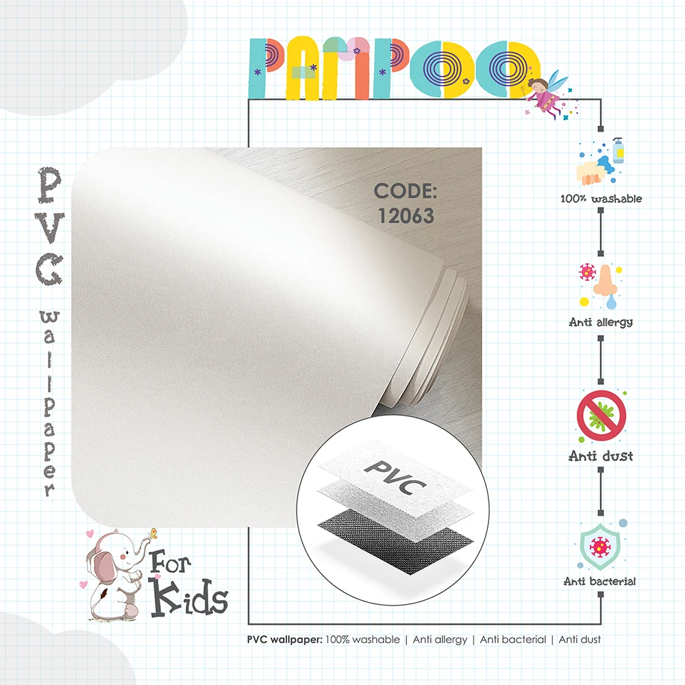 آلبوم کاغذ دیواری کودک پمپو، مجموعهای صد در صد وینیل (PVC)، قابل شستشو، ضد حساسیت (آنتی آلرژی)، ضد گرد و غبار (آنتی داست)، و مقاوم و بادوام در برابر انواع لکهها و آسیبهاست؛