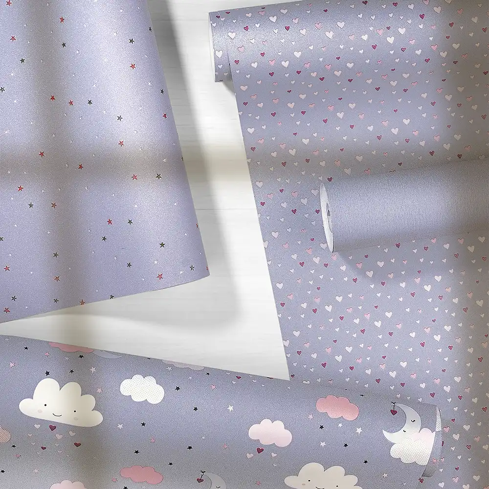 معرفی کاغذ دیواری کودک طرح ستاره باران | بنفش کد 12019