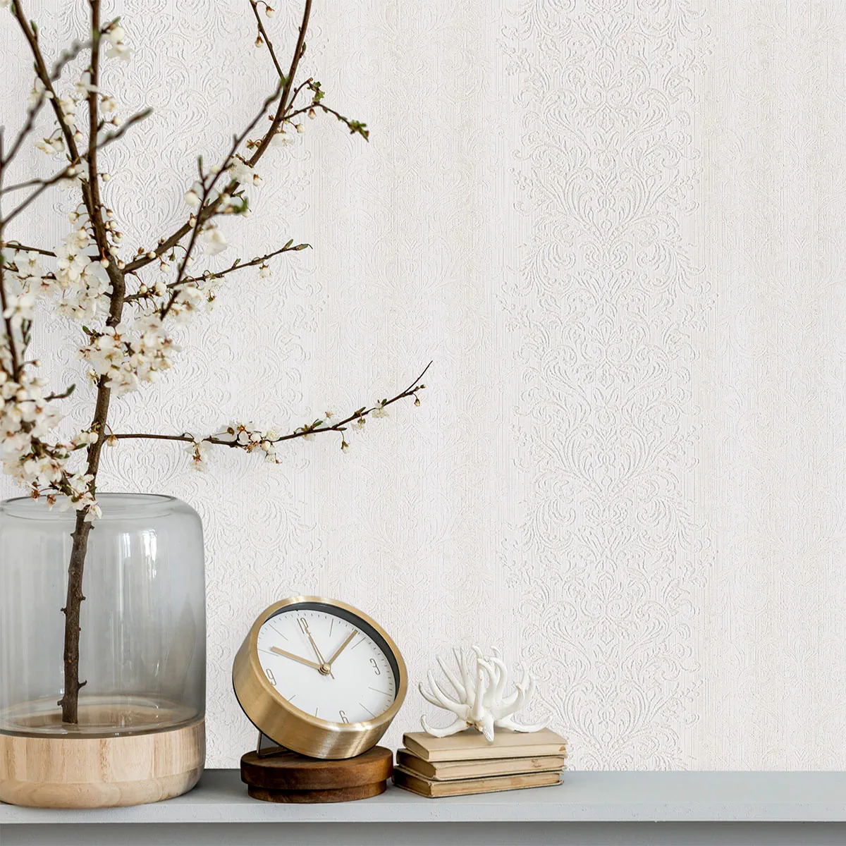 طرح این کاغذ دیواری همان طور که از نام آن پیداست، به صورت راه راه بوده و البته میتوان این کاغذ دیواری را تلفیقی از طرحهای راه راه و نقش و نگار دانست.