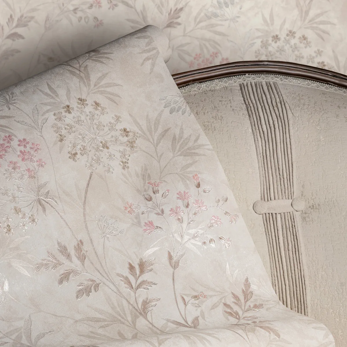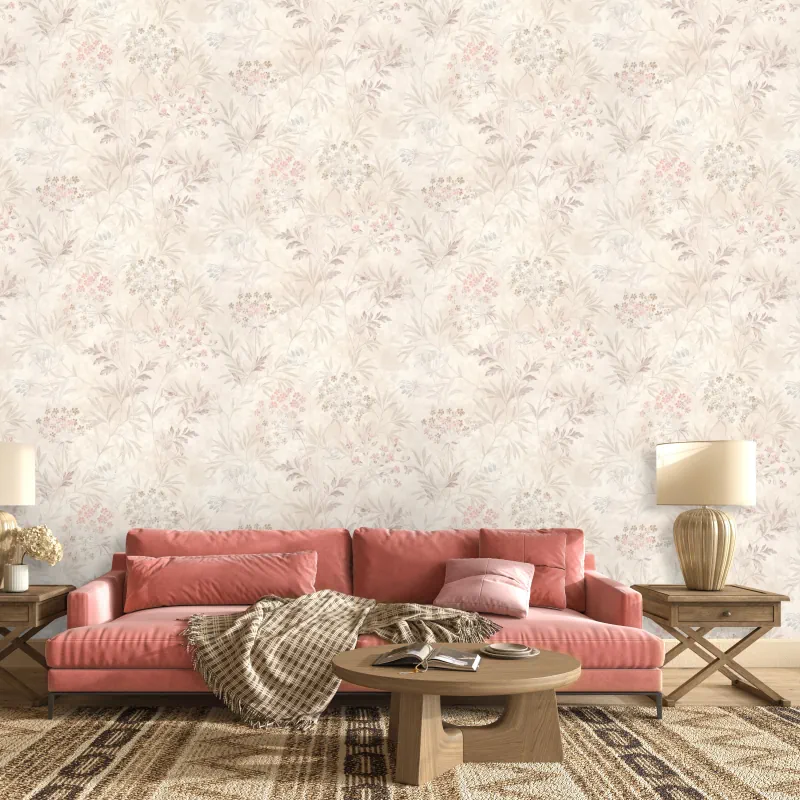 طرح این کاغذ دیواری همان طور که از نام آن پیداست، به صورت گلدار و شاخ و برگ‌دار است.