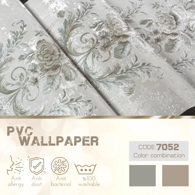 دو کد مکمل این کاغذ دیواری، کاغذ دیواری طرح گلدار کد ۷۰۵۳ و کاغذ دیواری طرح بافت کد ۷۰۵۴ میباشد. کاغذ دیواری کد ۷۰۵۳ طرح گلدار و کد ۷۰۵۴ طرح بافت داشته و میتوانند در کنار کاغذ دیواری کد ۷۰۵۲ طراحی خوب و منحصر به فردی را به شما ارائه دهد.