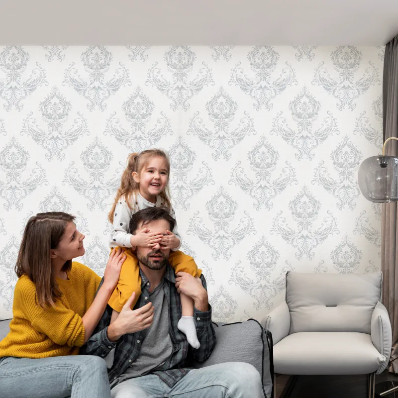 طرح این کاغذ دیواری همان طور که از نام آن پیداست، به صورت داماسک است.