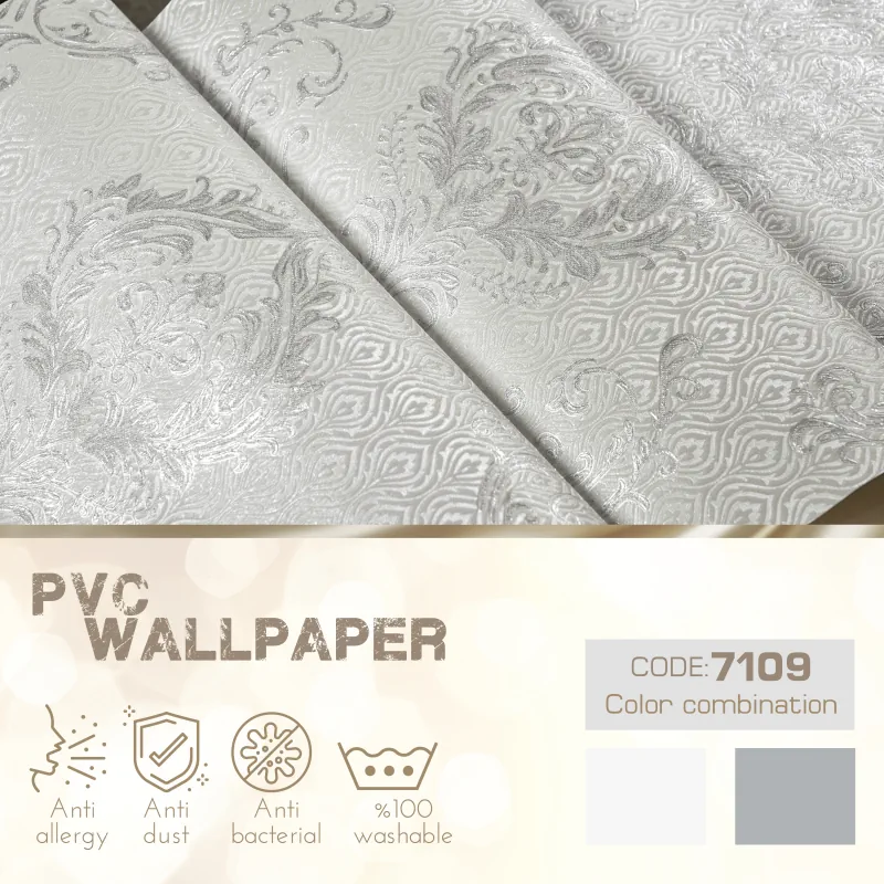 در طراحی کاغذ دیواری طرح داماسک کد ۷۱۰۹ سه رنگ مختلف در نظر گرفته شده است، برای مشاهده دو رنگ دیگر این کاغذ دیواری باید کدهای ۷۱۰۷ و ۷۱۱۱ را مشاهده بفرمایید. هر سه رنگ به همراه دو کد مکمل میتواند فضای خانه شما را دگرگون سازند.