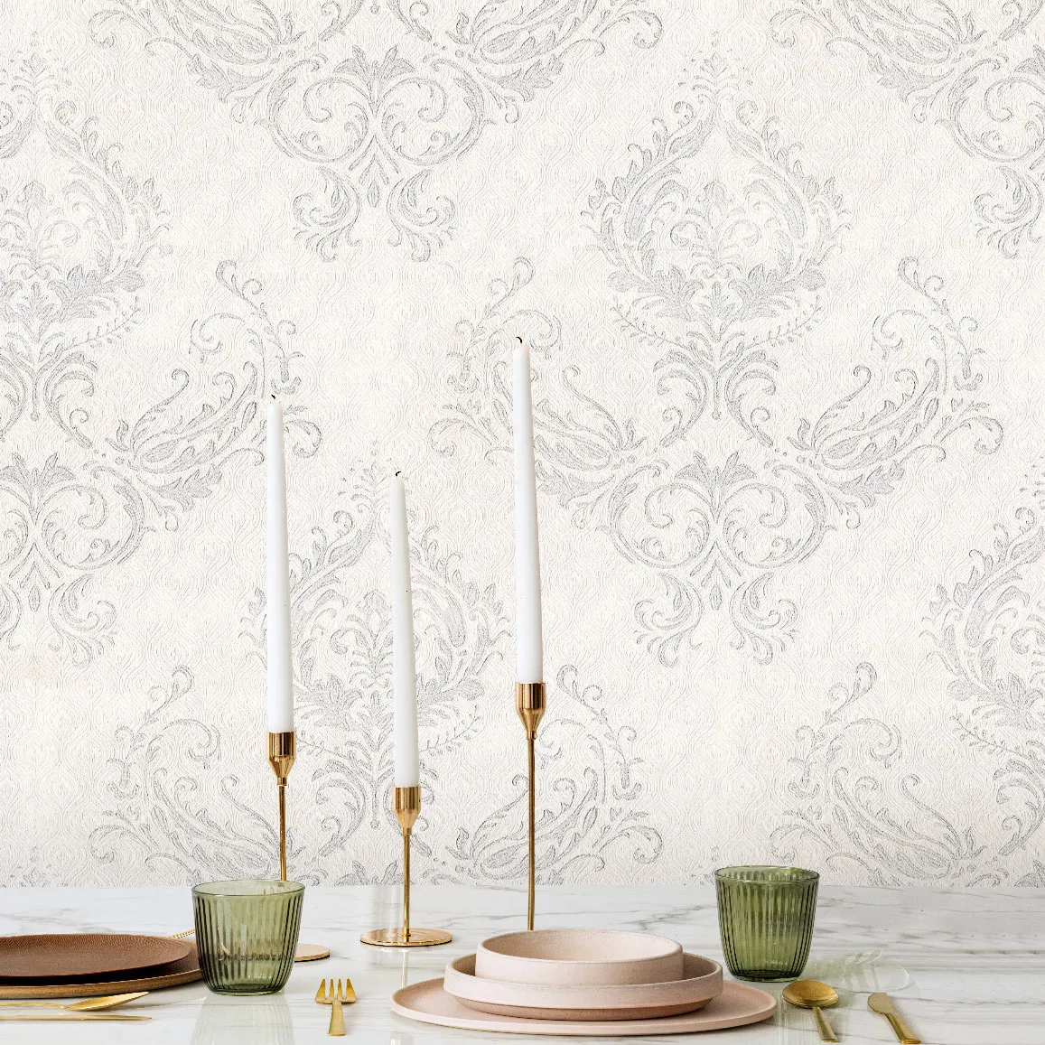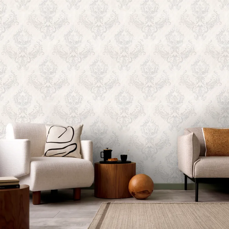 طرح این کاغذ دیواری همان طور که از نام آن پیداست، به صورت داماسک است.