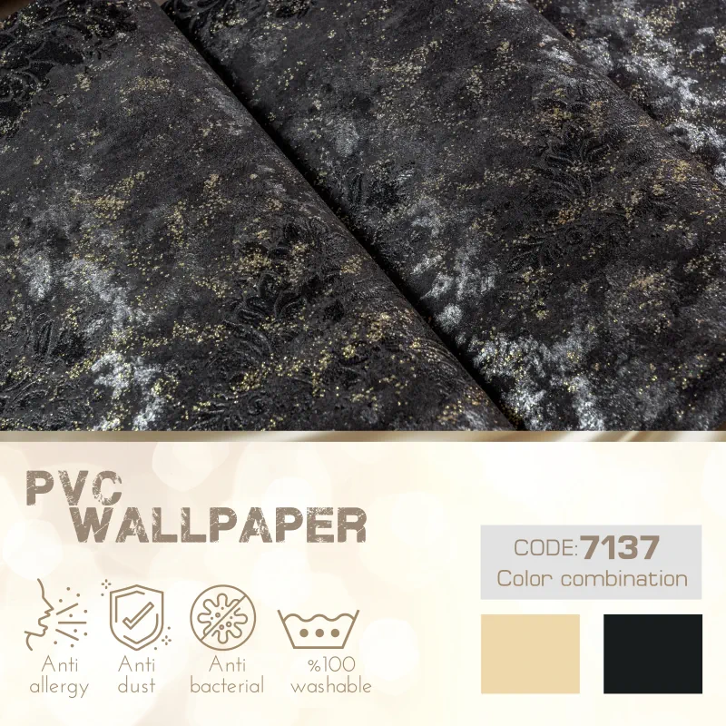 این محصول از جنس PVC (وینیل) ساخته میشود، قابلیتی که کاغذ دیواریهای PVC و وینیل دارند دوام بالا و قابلیت شستشوی آنهاست. داشتن یک لایه زیرین، یک لایه فیبر یا کاغذ در میان و یک لایه پوشش نهایی باعث دوام بالای این دسته از کاغذ دیواریها میشود.