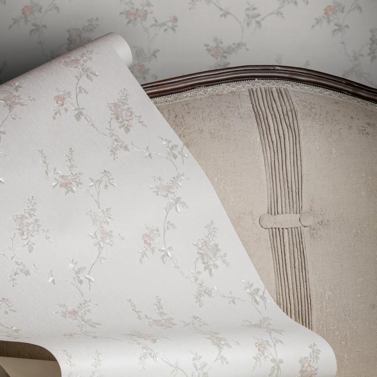طرح این کاغذ دیواری همان طور که از نام آن پیداست، به صورت گلدار و قوارهای است.