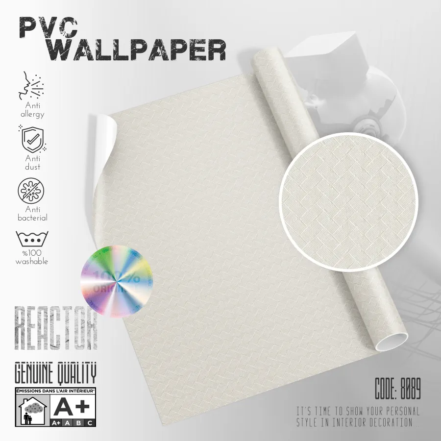 کاغذ دیواری طرح بافت کد ۸۰۸۹، یکی از طرح‌های انحصاری آلبوم راکتور است که توسط شرکت اکستریم والز طراحی و روانه بازار شده است. این کد مناسب سبک مدرن بوده و در اغلب فضاهایی مثل کاغذ دیواری اتاق خواب ، کاغذ دیواری پذیرایی ، کاغذ دیواری اتاق نشیمن ، کاغذ دیواری آشپزخانه و کاغذ دیواری اداری قابل استفاده است.