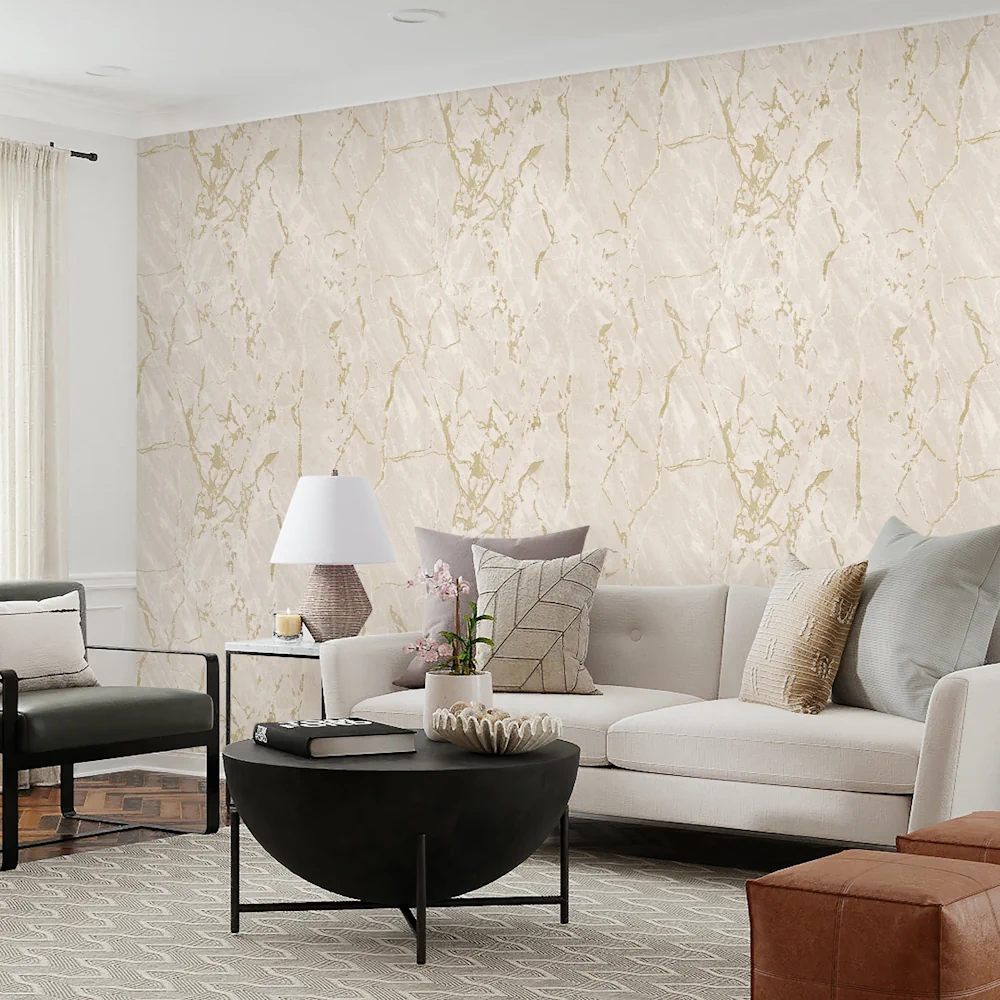 کاغذ دیواری طرح رگه دار / پتینه کرم کد ۱۱۰۷۶