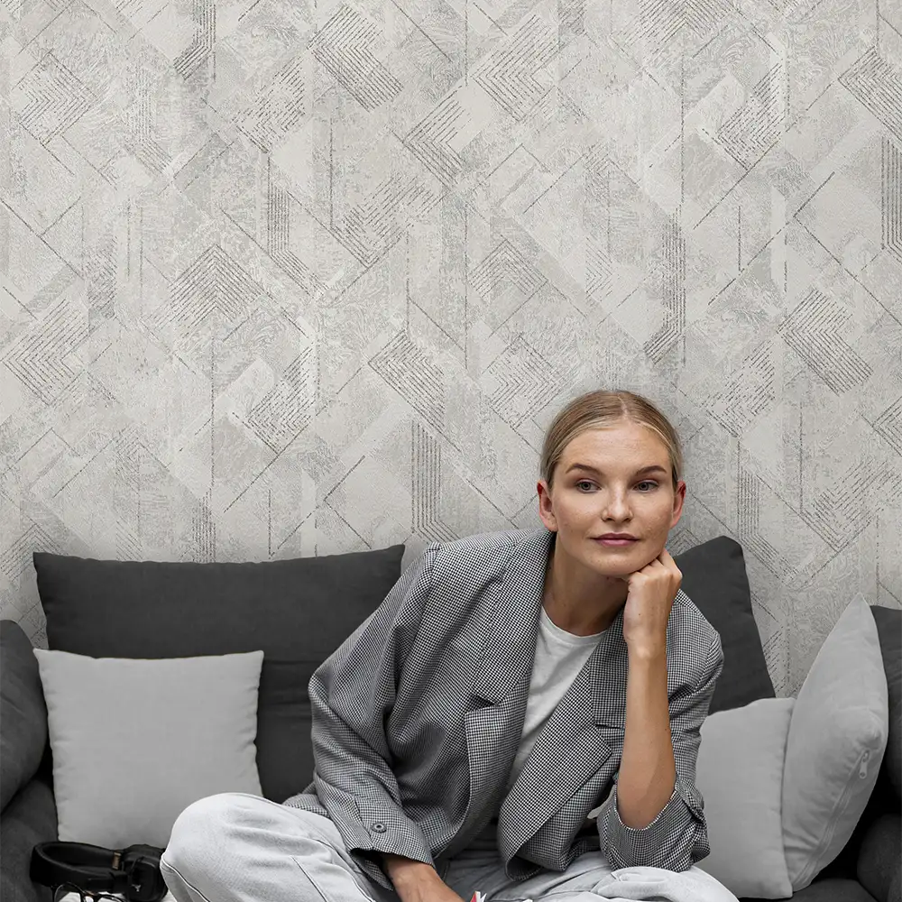 کاغذ دیواری طرح هندسی / پتینه نقرهای کد ۱۱۰۳۶